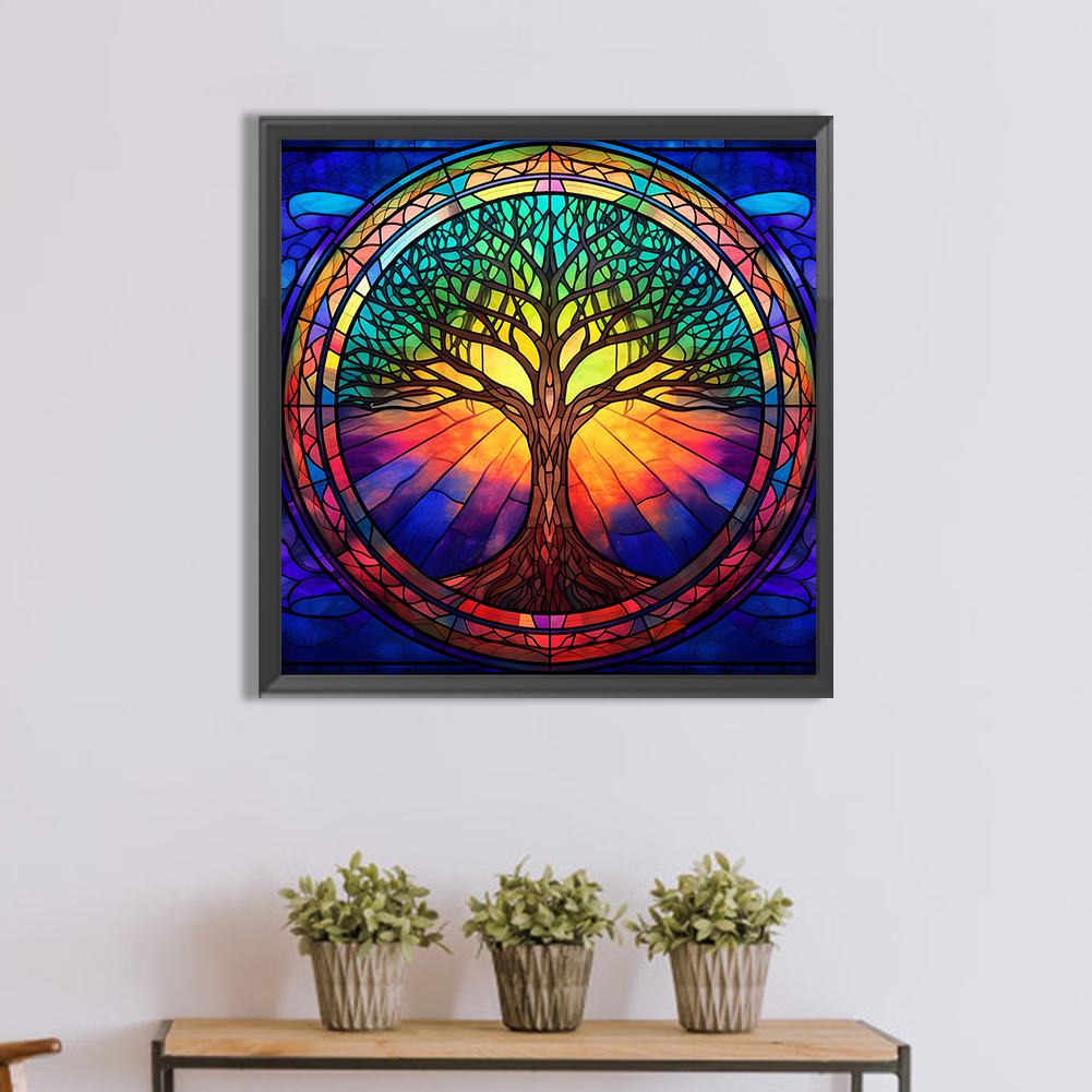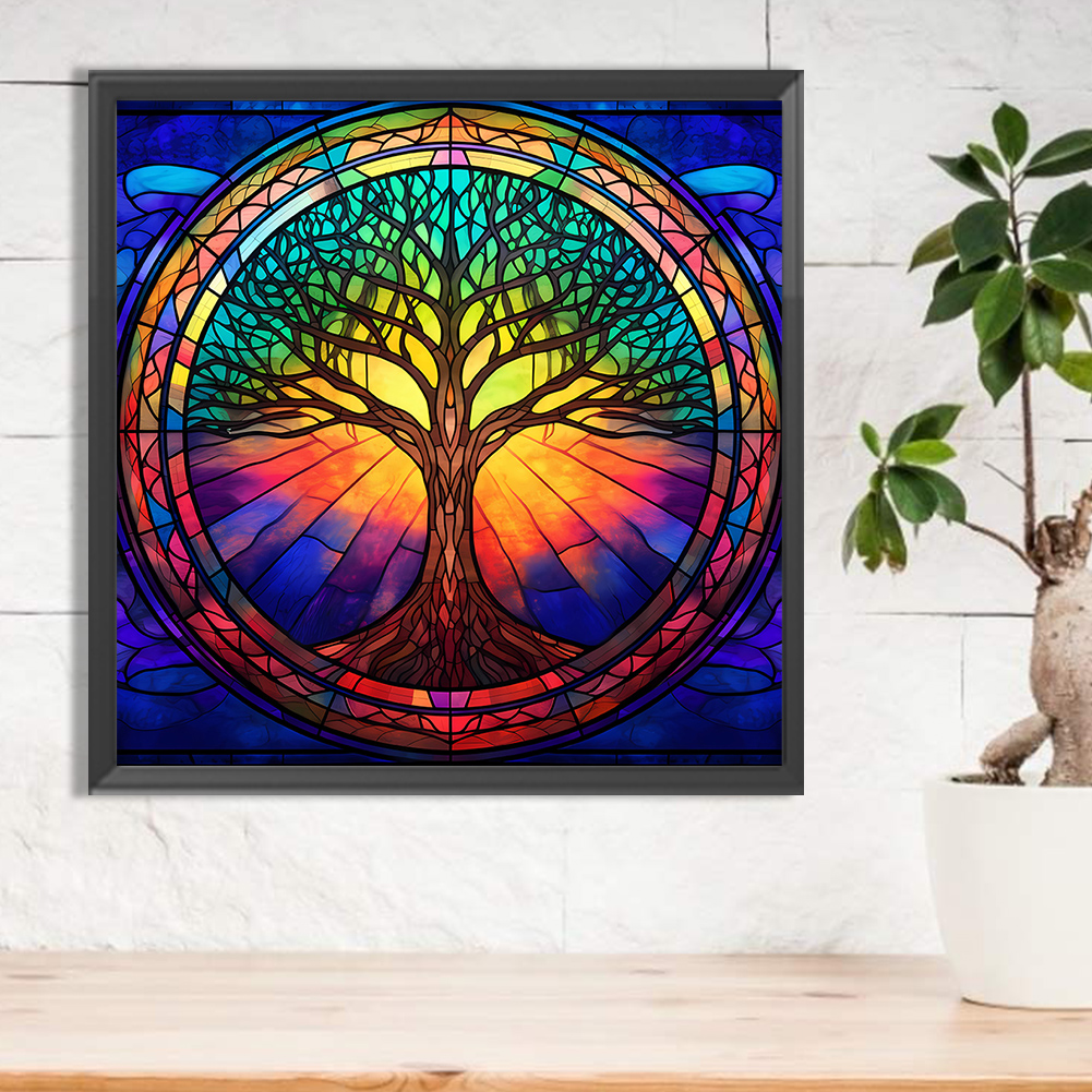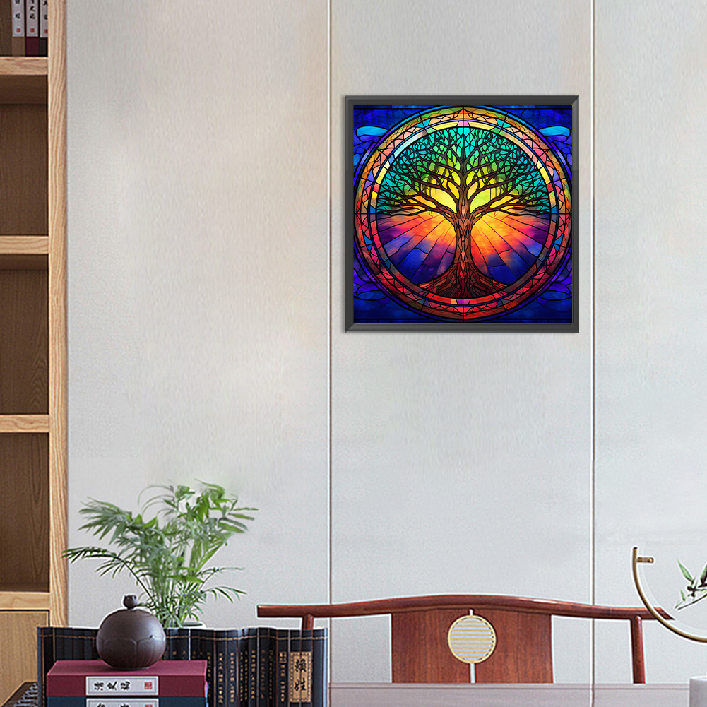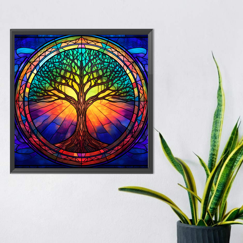 Diamond Painting - Full Round Drill - Stained Glass Tree(Canvas|30*30cm)