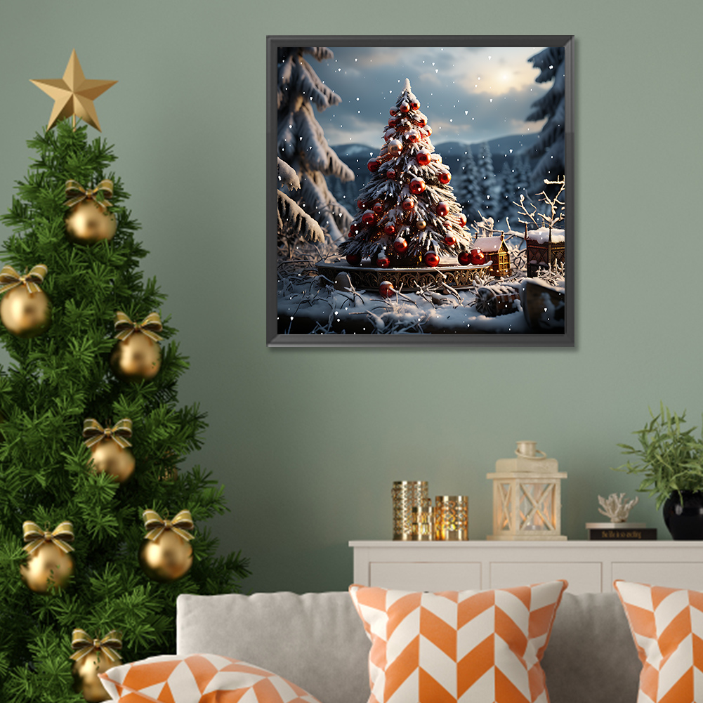 Diamond Painting - Full Round Drill - Winter Snow Christmas Tree(Canvas|30*30cm)