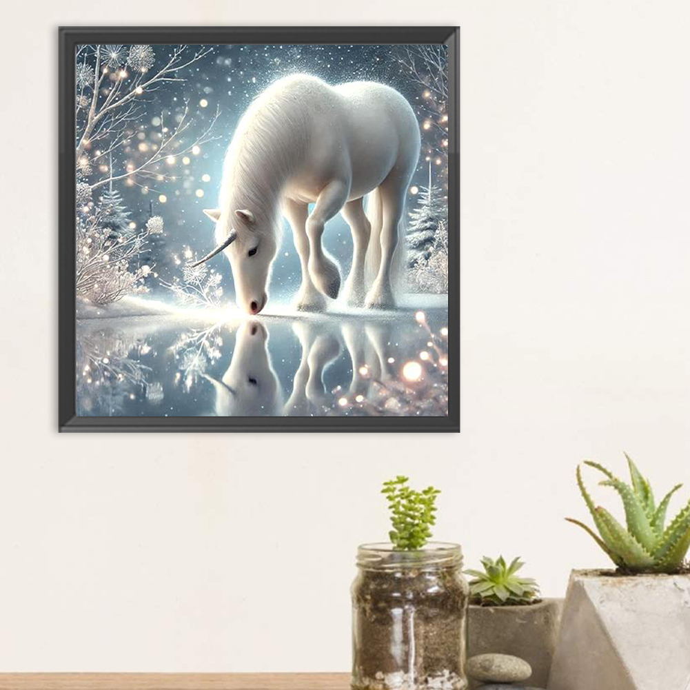 Diamond Painting - Full Round Drill - Snow Unicorn(Canvas|30*30cm)