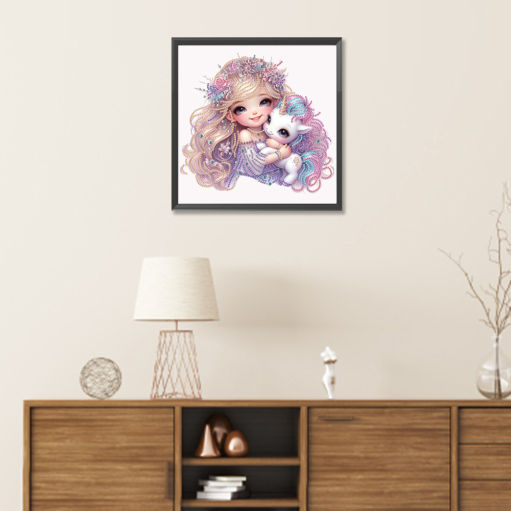 Diamond Painting - Partial Special Shaped Drill - Girl and Unicorn(Canvas|30*30cm)