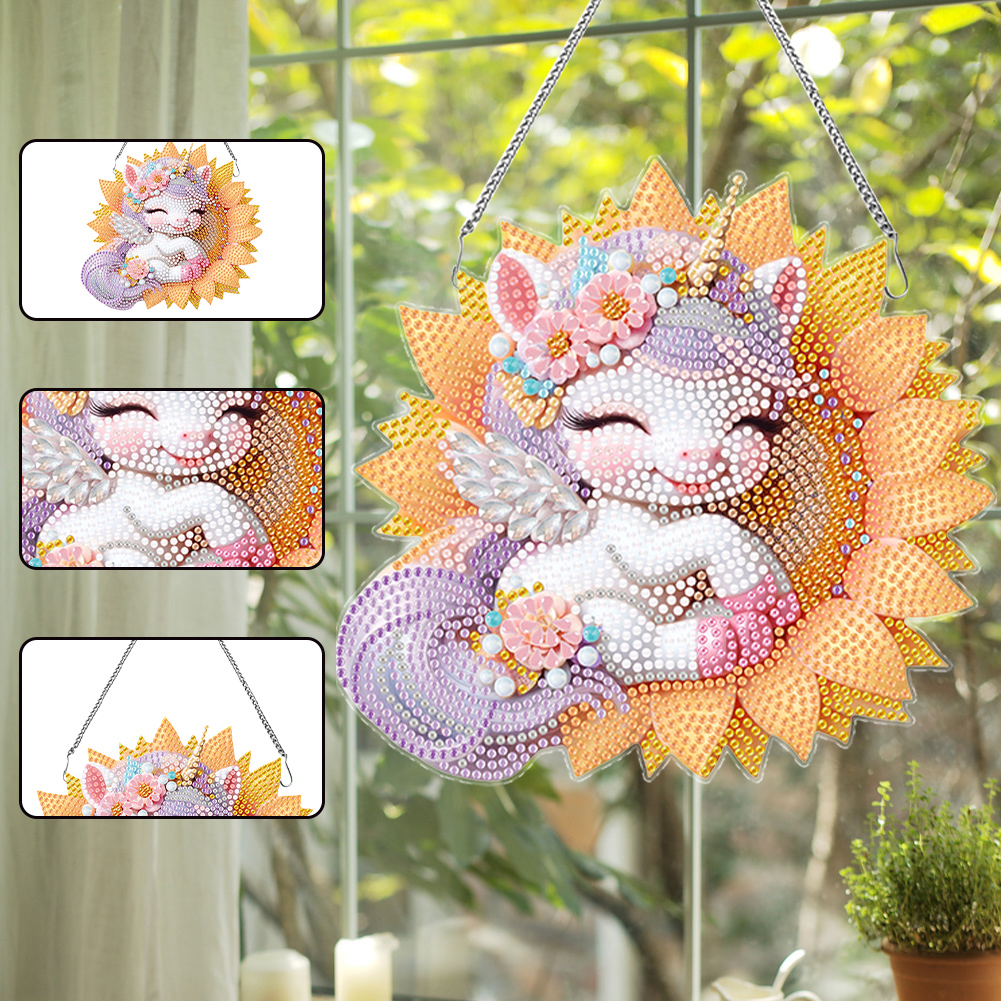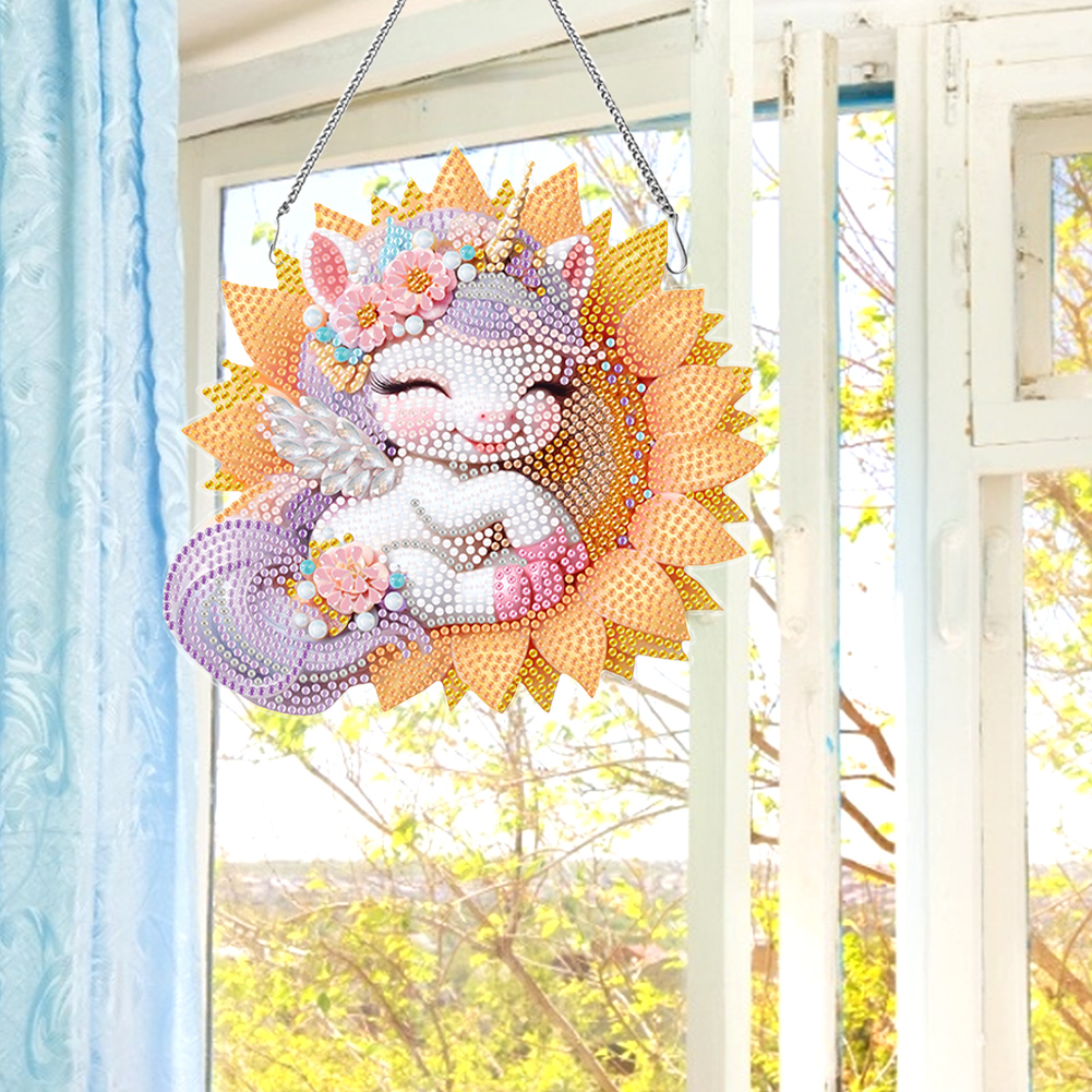 Single-Side Unicorn Diamond Art Hanging Pendant for Office Decor (Sunflower)