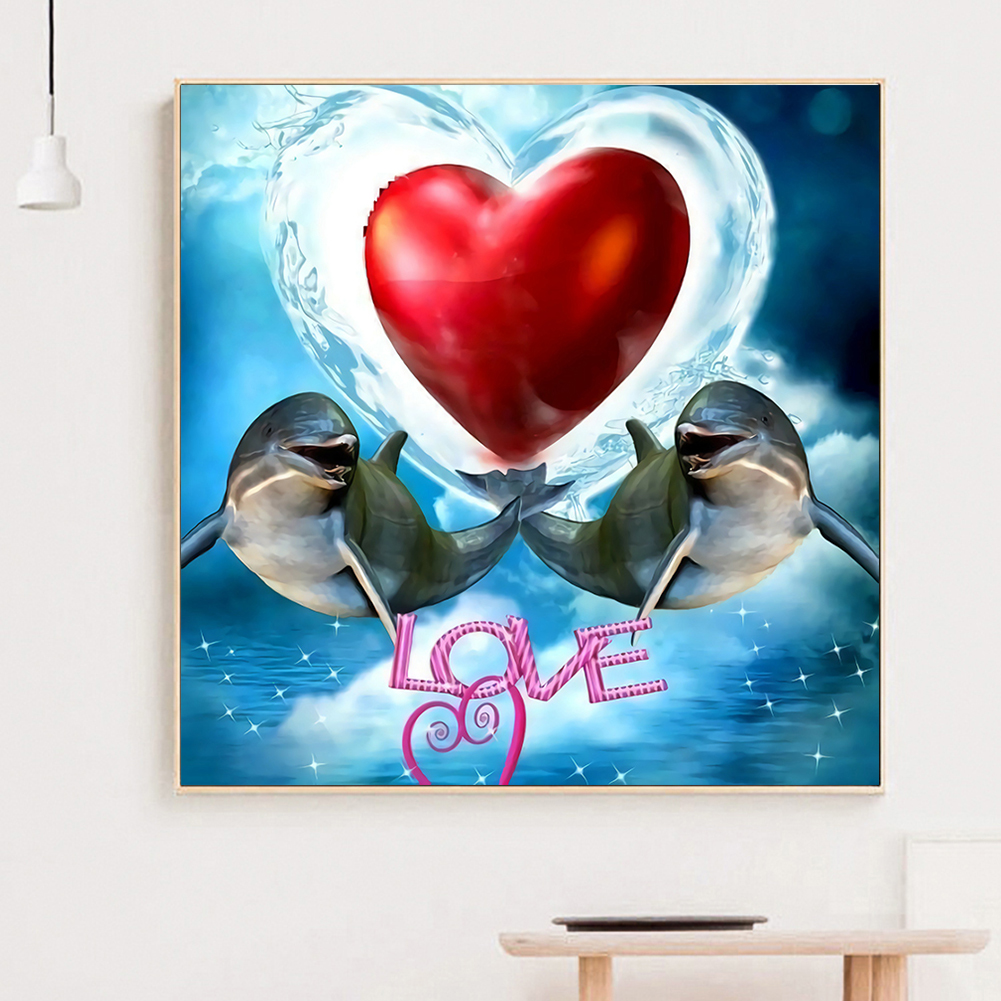 Full Round Diamond Painting 30*30cm - Love Dolphin
