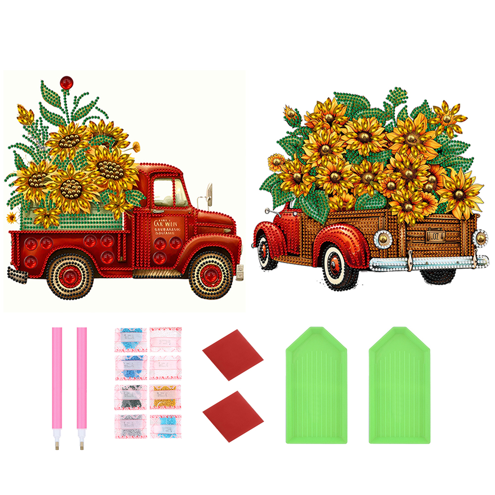 2pcs Special Shape Diamond Painting 30*30cm - Summer Sunflower Classic Car