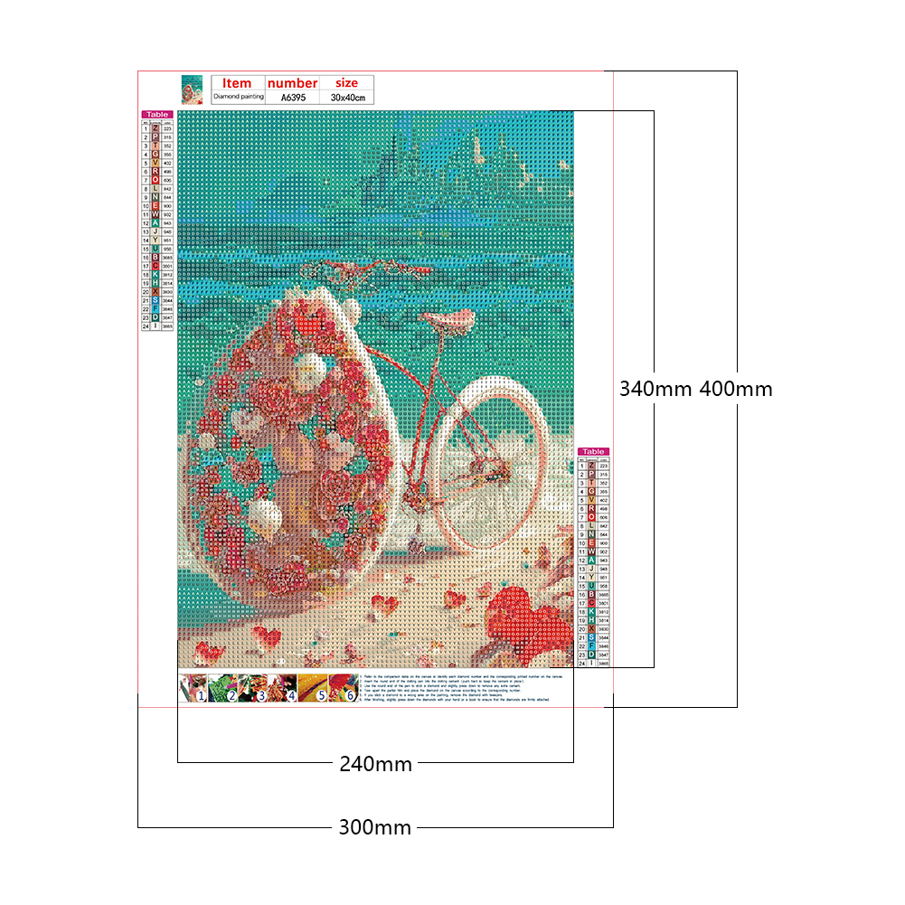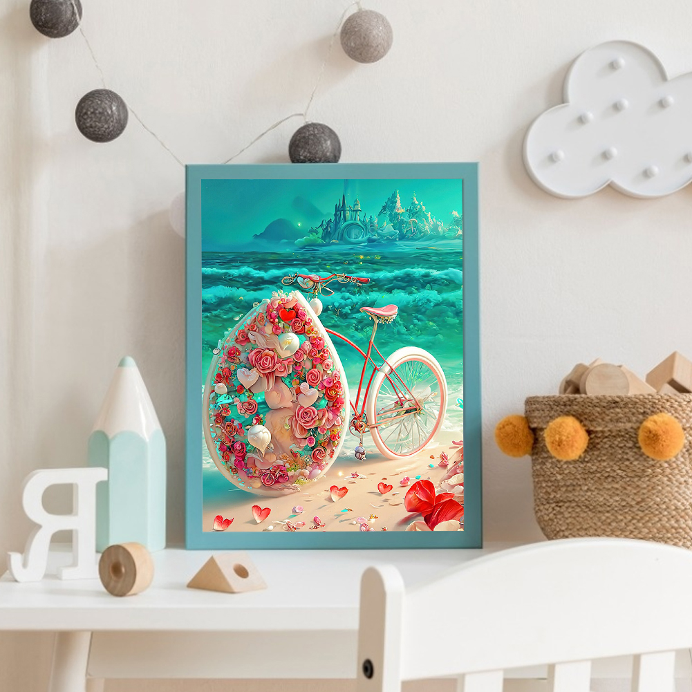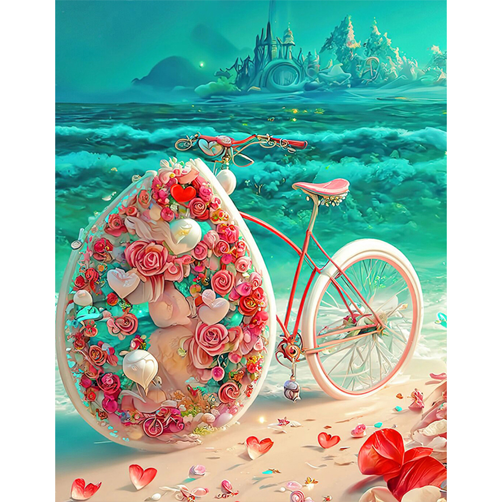 Full Round Diamond Painting 30*40cm - Beach Romantic Rose Bicycle