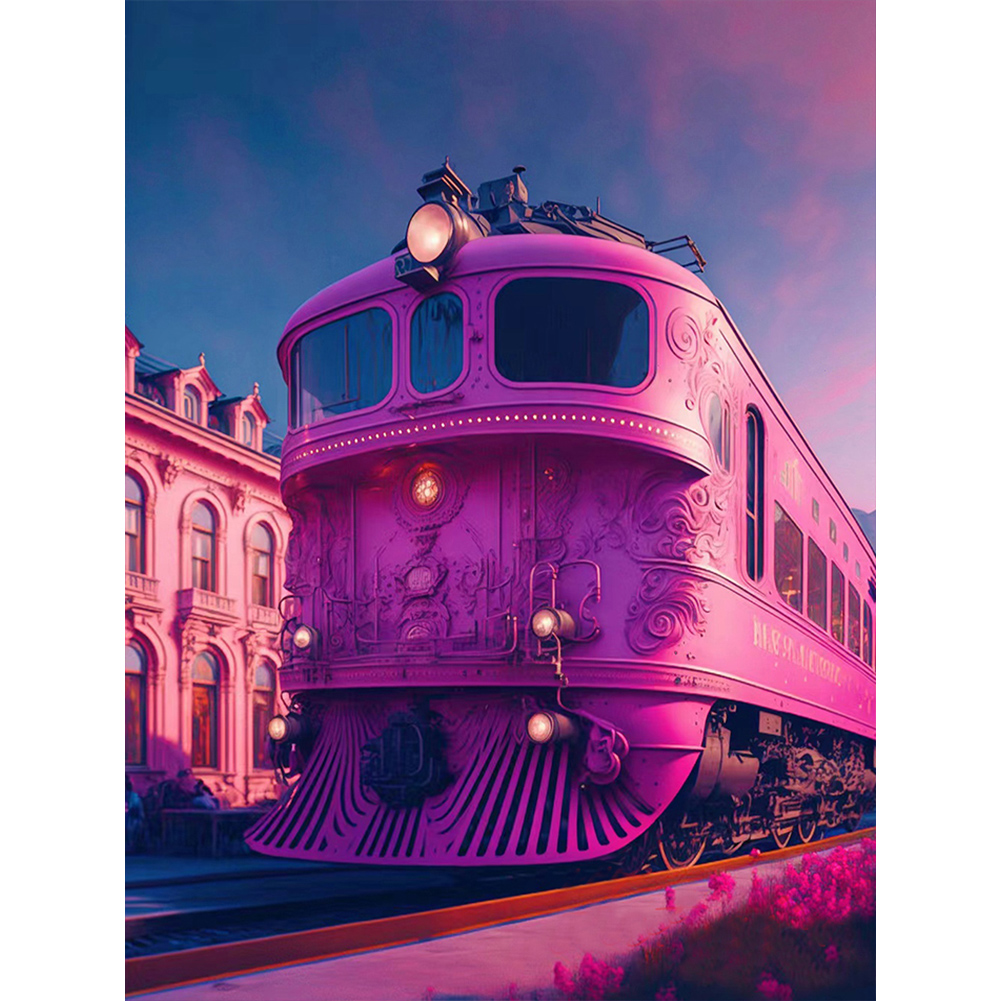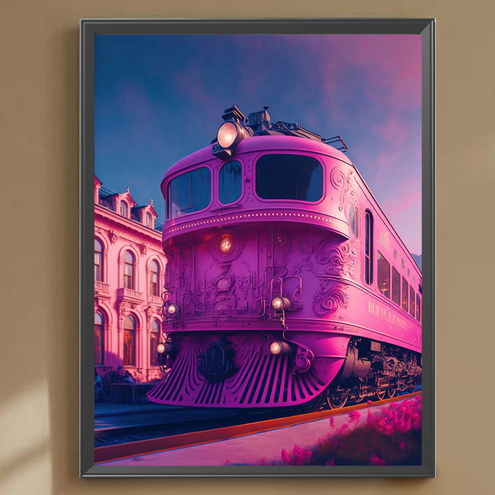 Full Round Diamond Painting 30*40cm - Pink Ocean Train