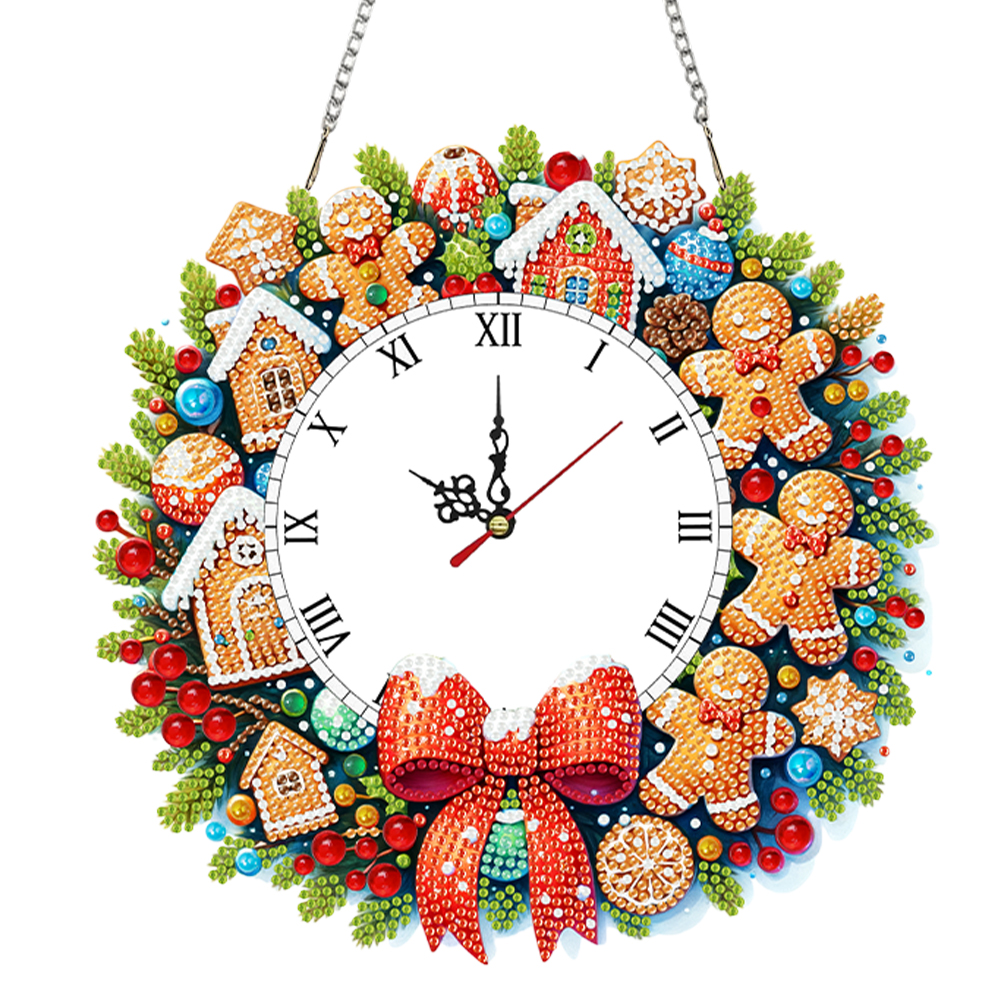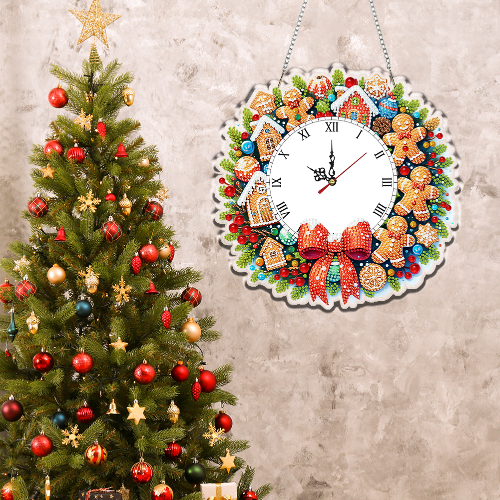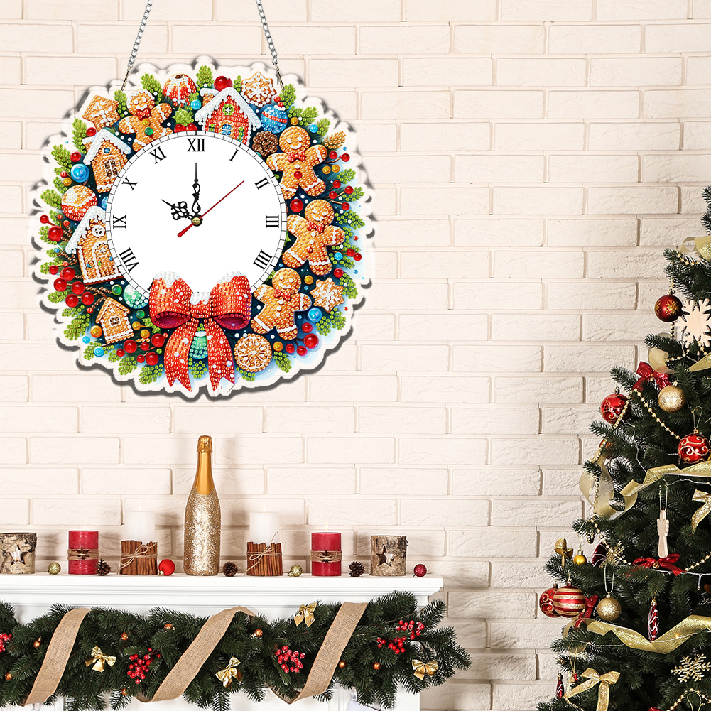 2D Flat DIY Christmas Gingerbread Man Acrylic Diamond Painting Clock Pendant