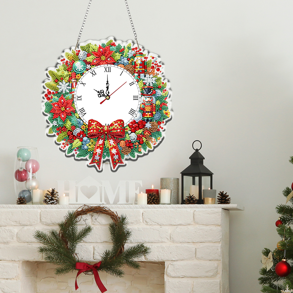 2D Flat DIY Christmas Wreath Acrylic Diamond Painting Clock Pendant Home Decor