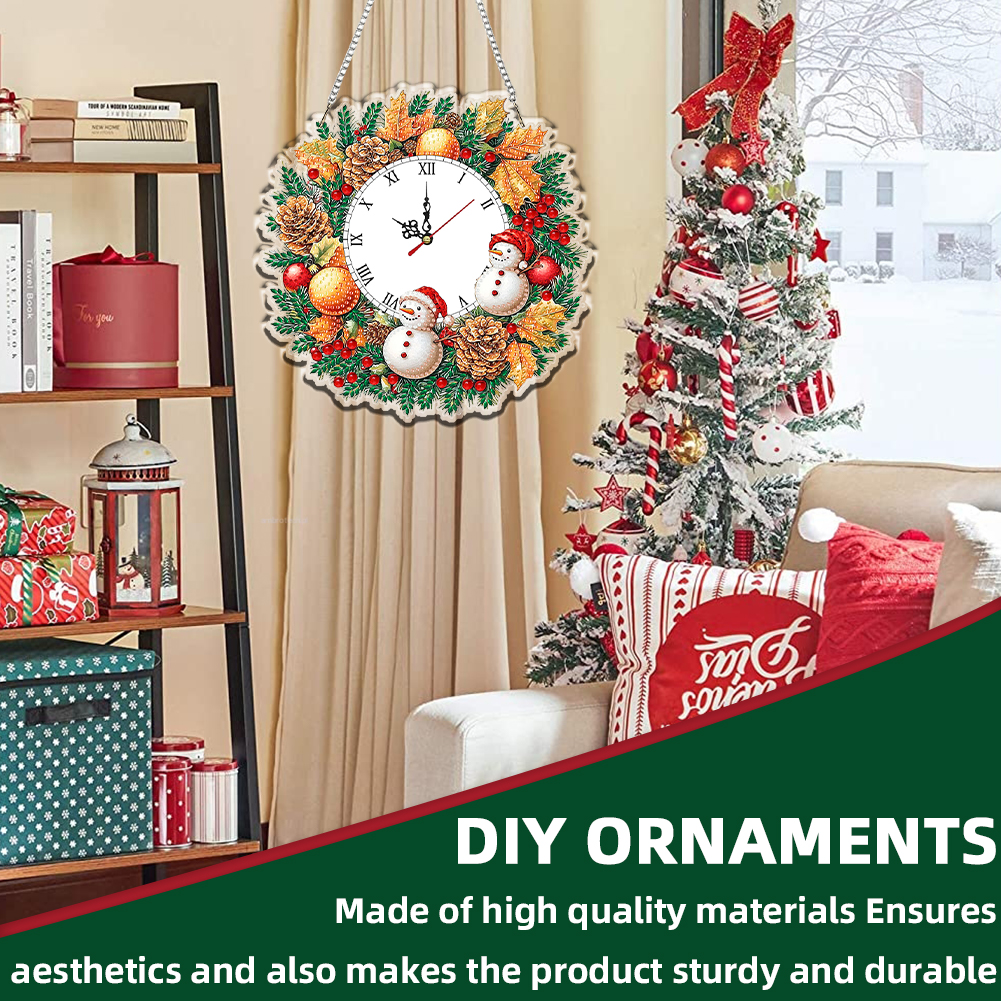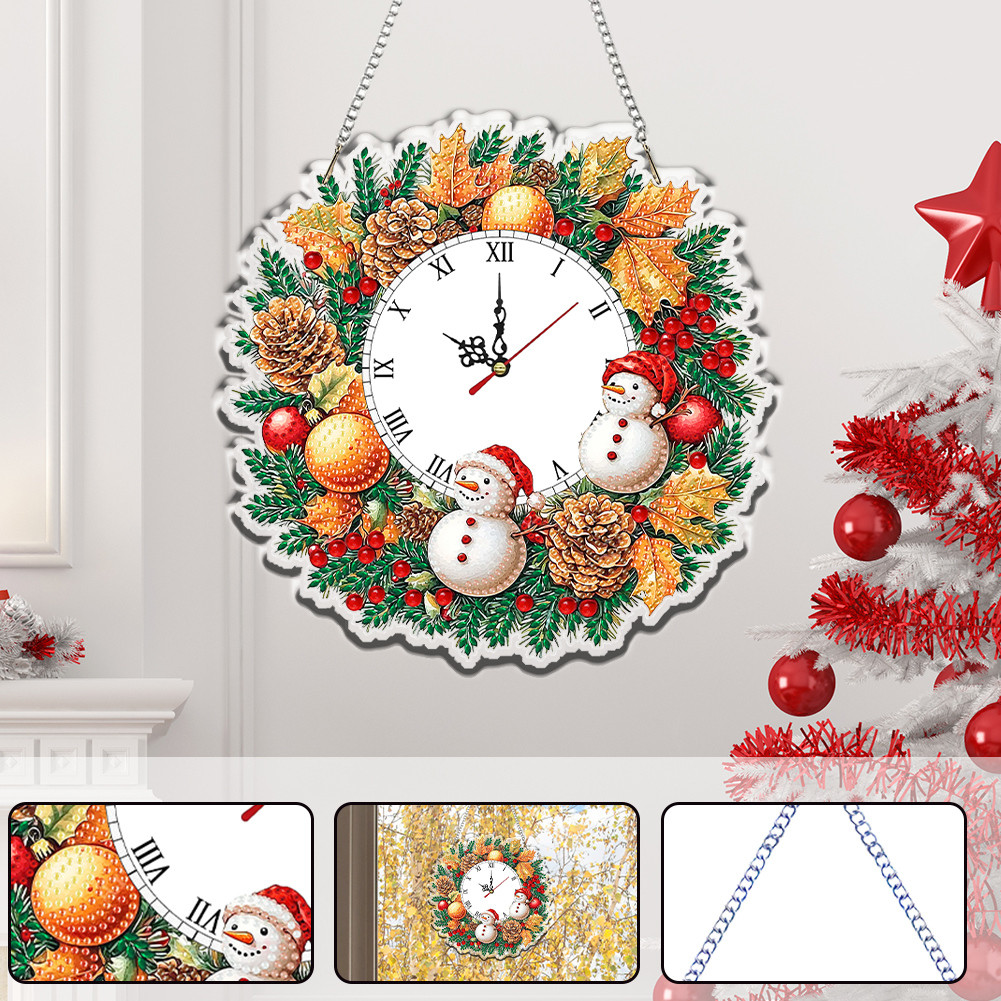 2D Flat DIY Fall Snowman Acrylic Diamond Painting Clock Pendant Home Decor