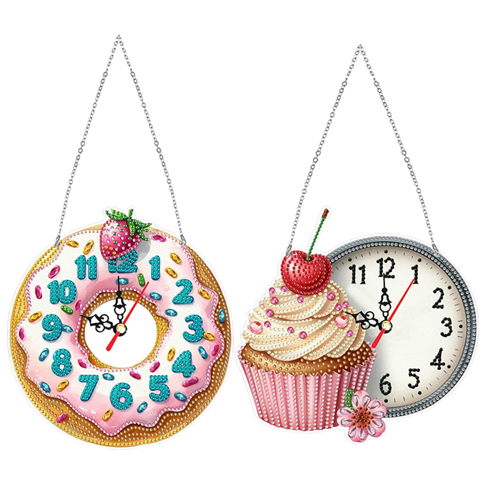 2Pcs Dessert DIY Diamond Painting Ornament with Clock Function Home Decor Art
