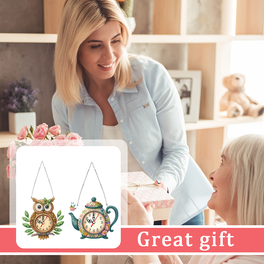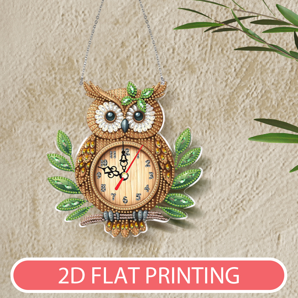 2Pcs Owl DIY Diamond Painting Ornament with Clock Function Home Craft Decor Art