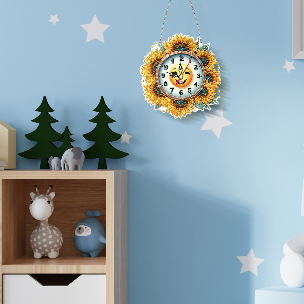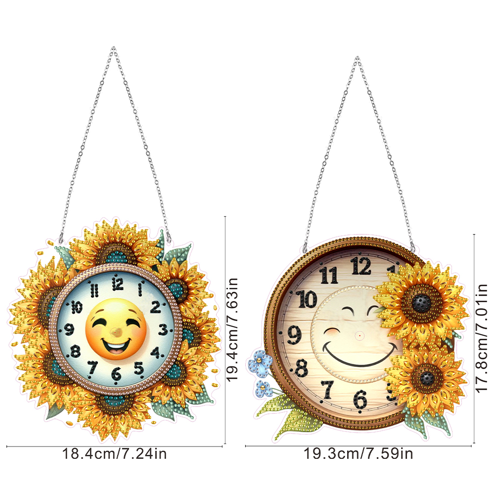 2Pcs Sunflower DIY Diamond Painting Ornament with Clock Function Home Decor Art