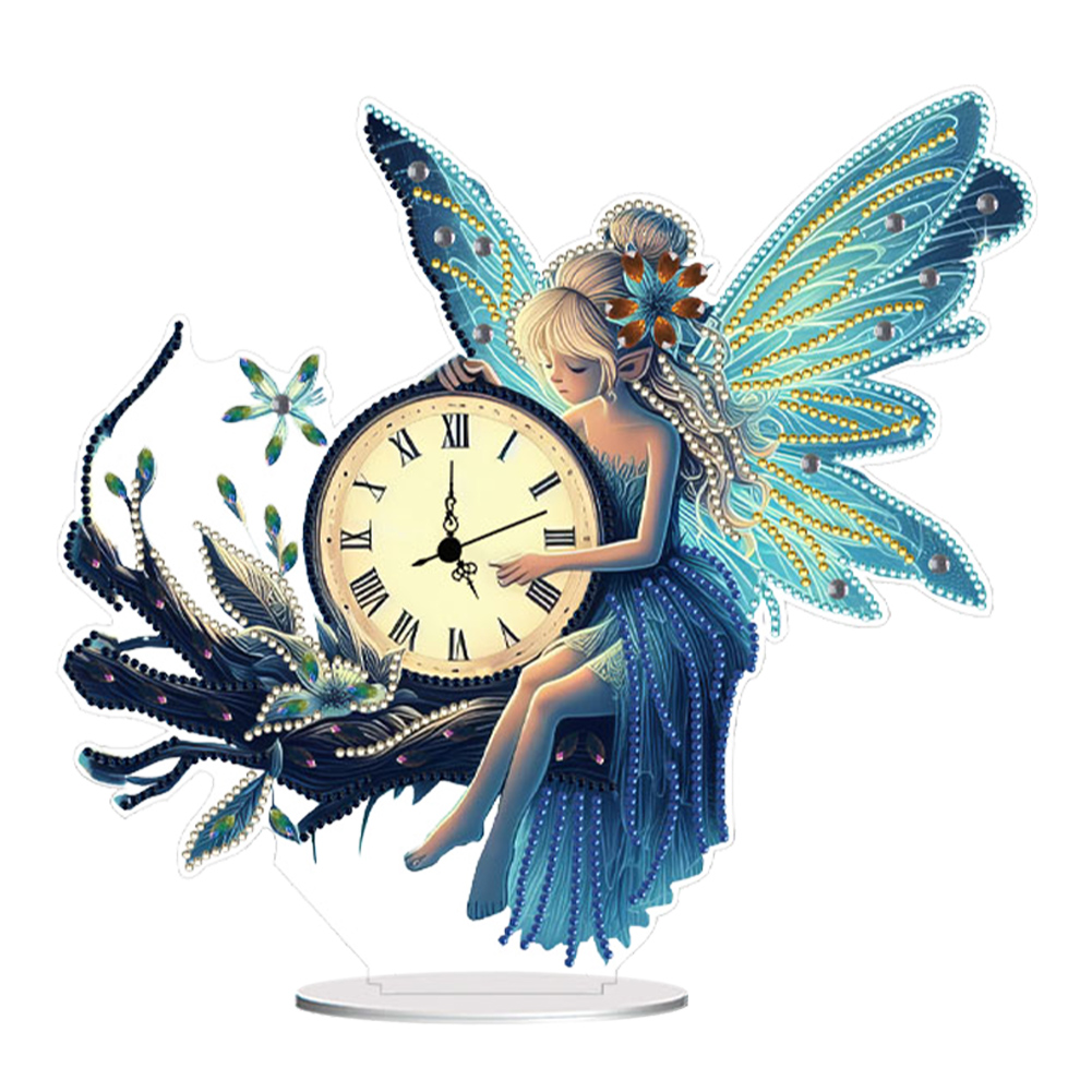 Acrylic Special Shape Fairy Diamond Painting Clock Ornaments Kit for Home Decor