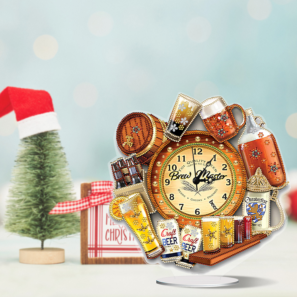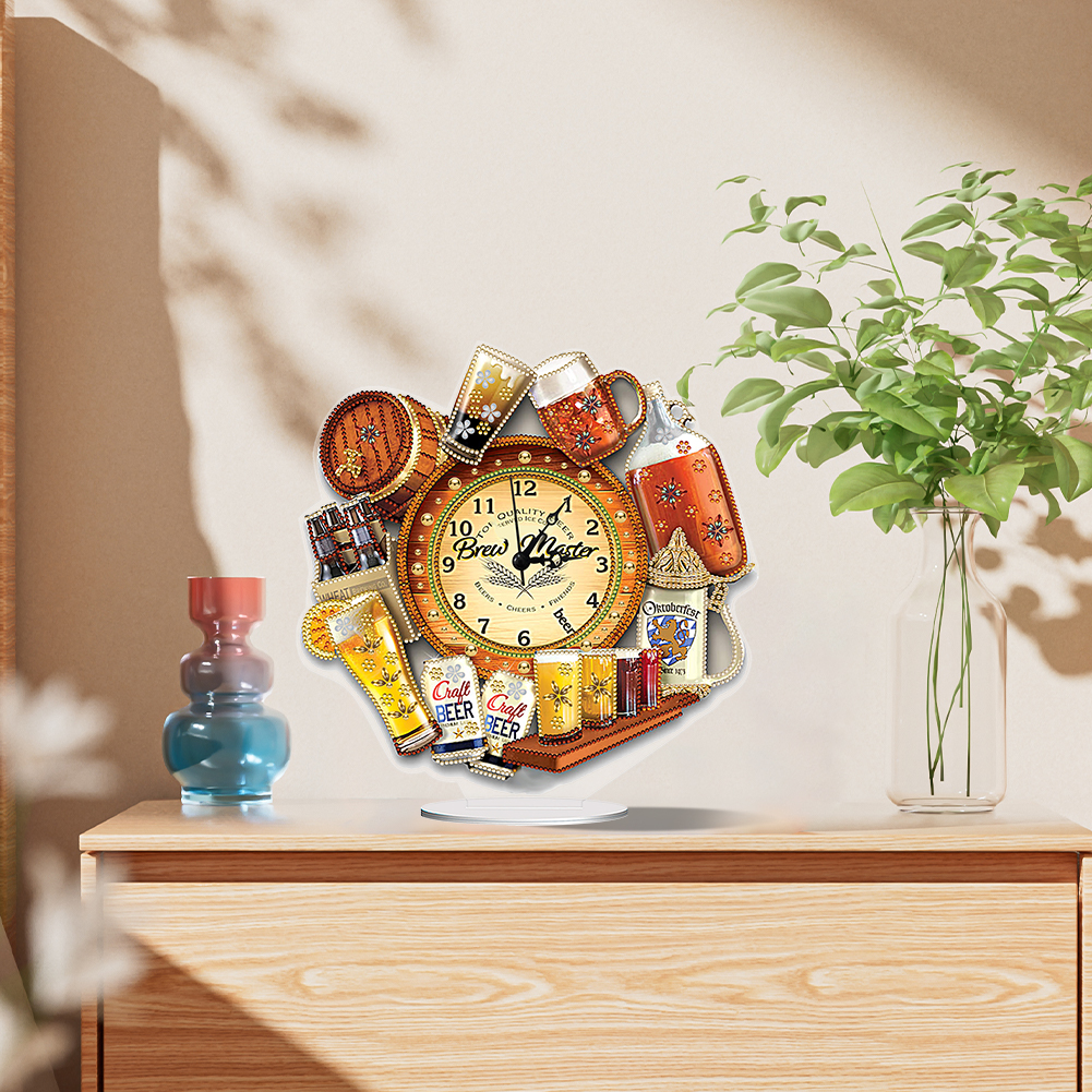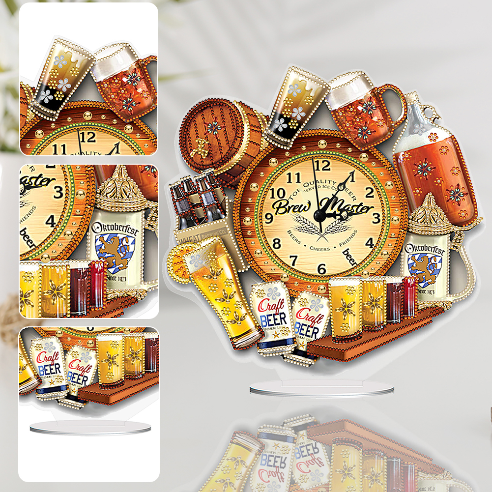 DIY Beer Special Shape Acrylic Diamond Painting Clock Art Craft