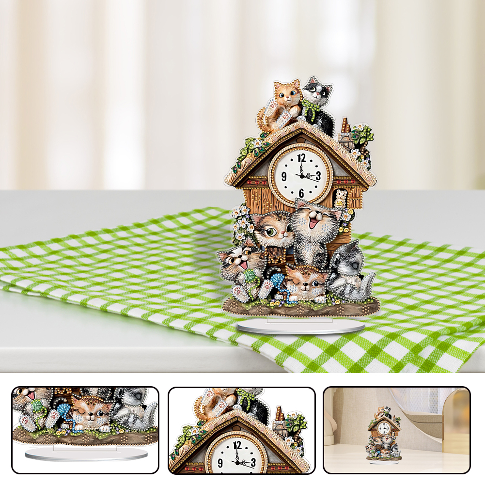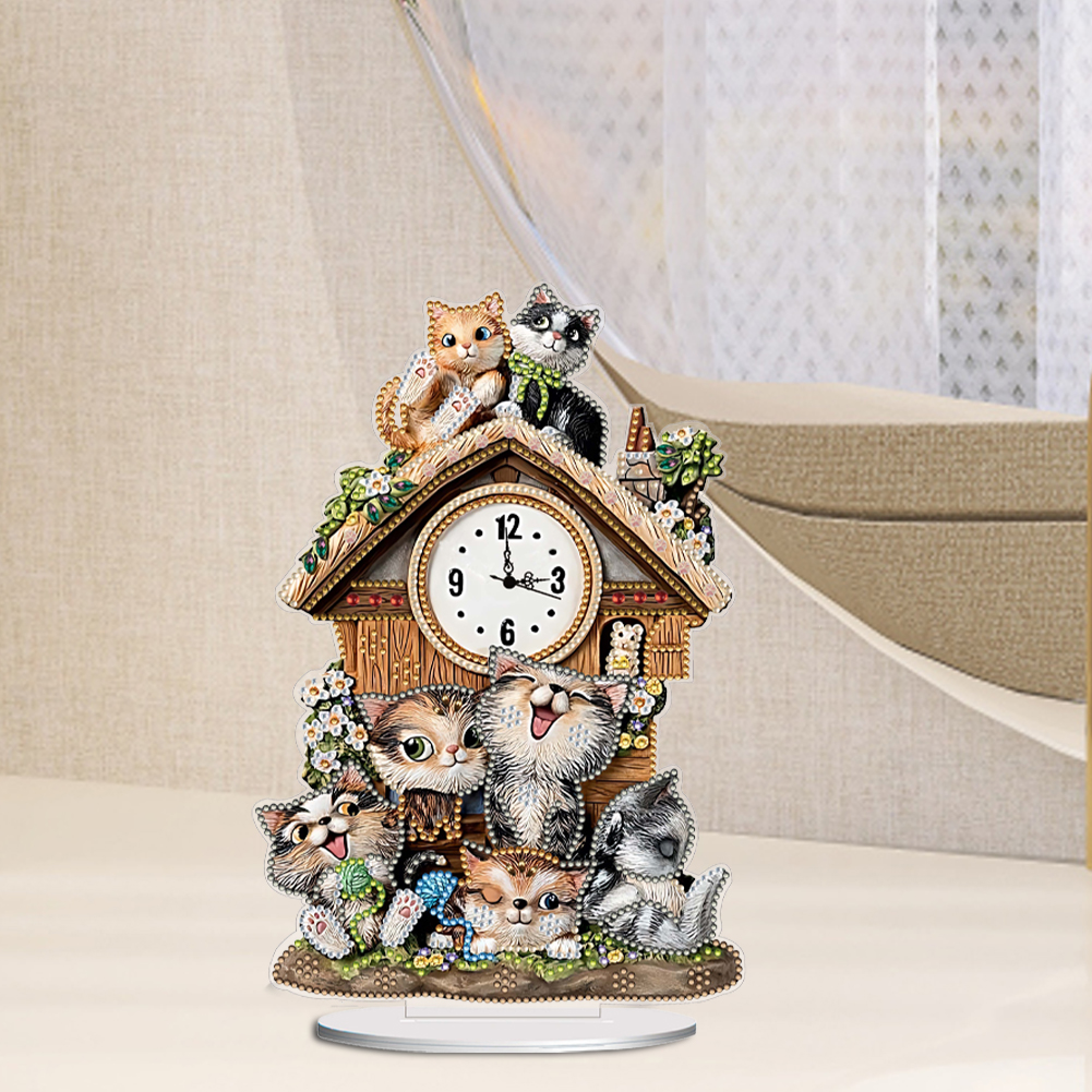 DIY Cat Hut Acrylic Special Shaped 5D Diamond Painting Clock Art Craft