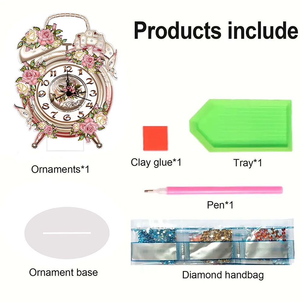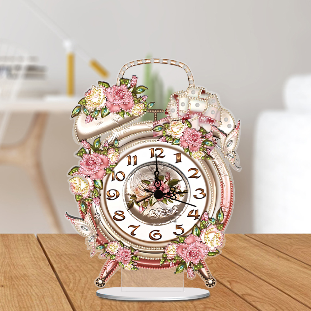 DIY Flowers Vintage Acrylic Special Shaped 5D Diamond Painting Clock Art Craft