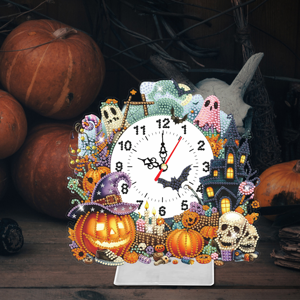 DIY Halloween Pumpkin Acrylic Special Shaped Diamond Painting Clock Desktop Decor