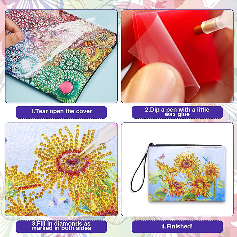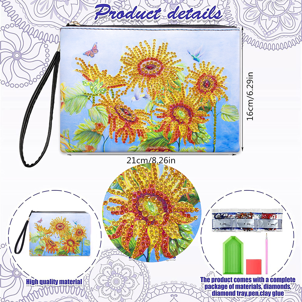 5D DIY Sunflower Partial Shaped Drill DIY Diamond Painting Bag with Zipper