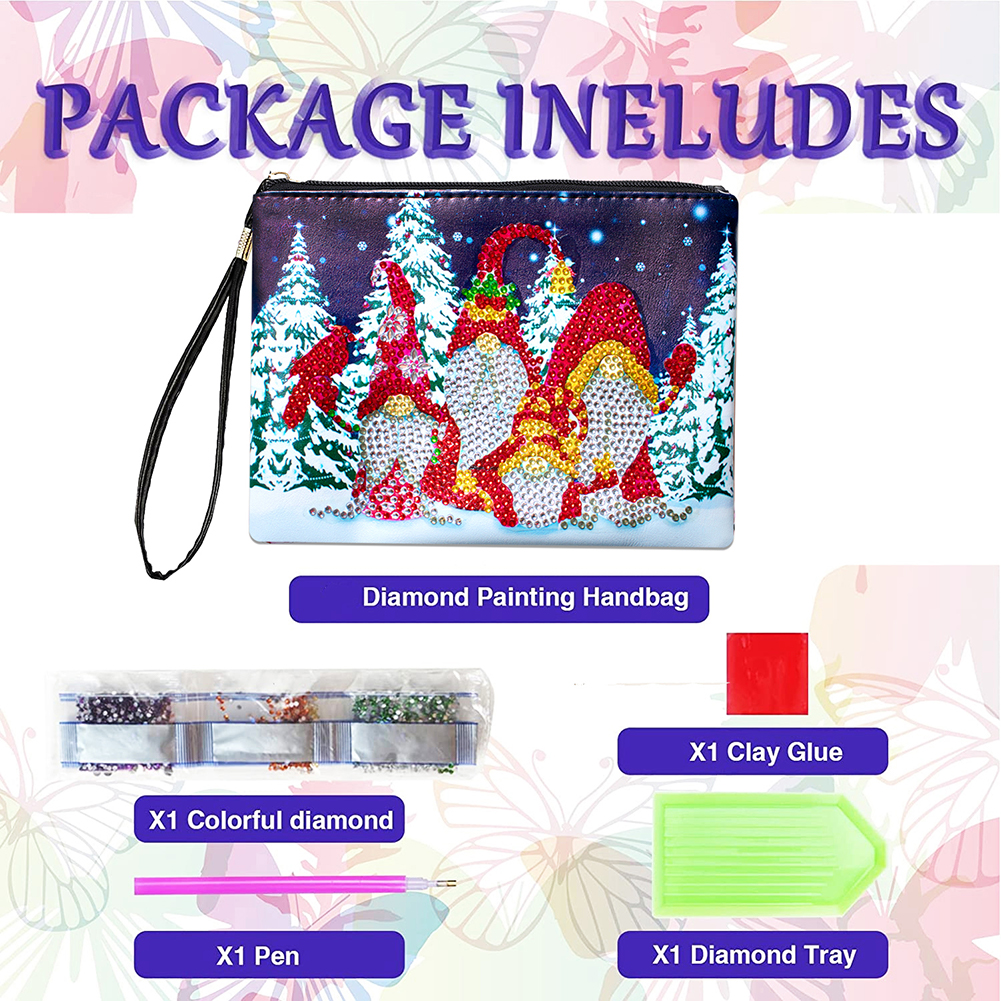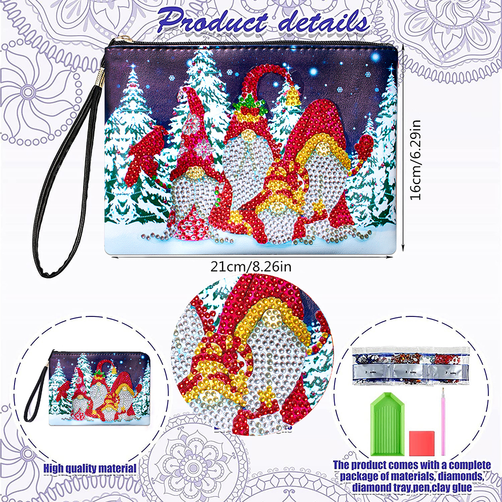5D DIY Xmas Gnome Partial Shaped Drill DIY Diamond Painting Bag with Zipper