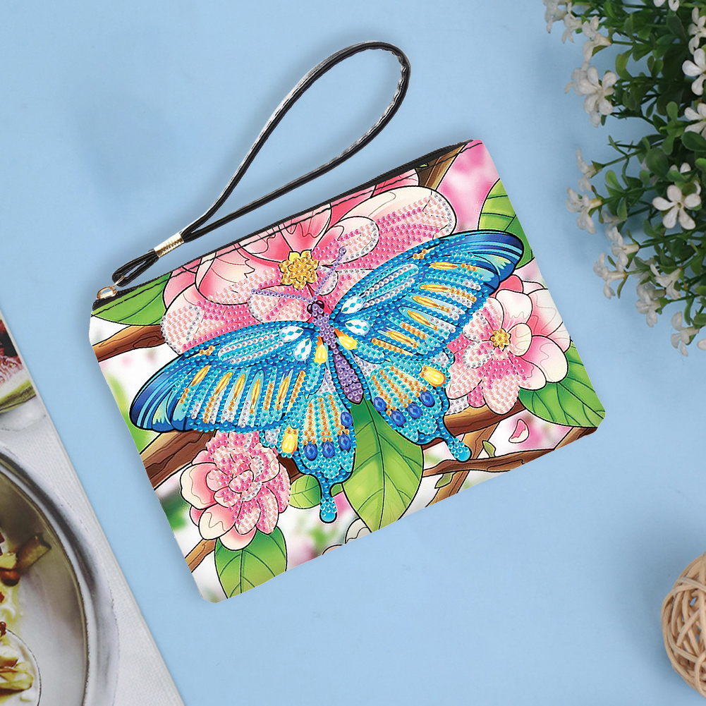 DIY Butterfly PU Partial Special Shaped Diamond Painting Wallet Makeup Bag