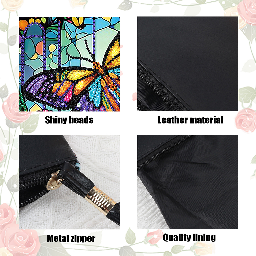 DIY Butterfly PU Partial Special Shaped Diamond Painting Wallet Makeup Bag