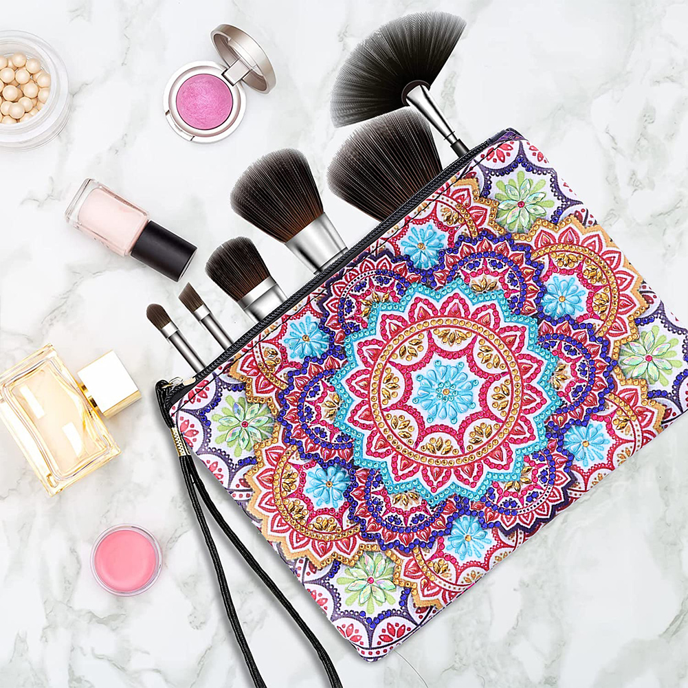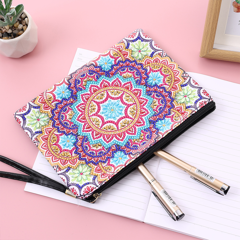 DIY Mandala Diamond Art Cosmetic Bag Flowers Single Sided PU Women Clutch