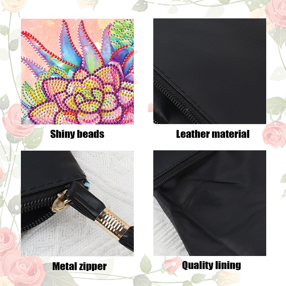 DIY Succulent PU Partial Special Shaped Diamond Painting Wallet Makeup Bag
