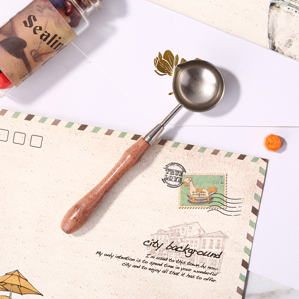 Retro Wooden Handle Sealing Wax Bead Tablet Melting Spoon for Scrapbooking