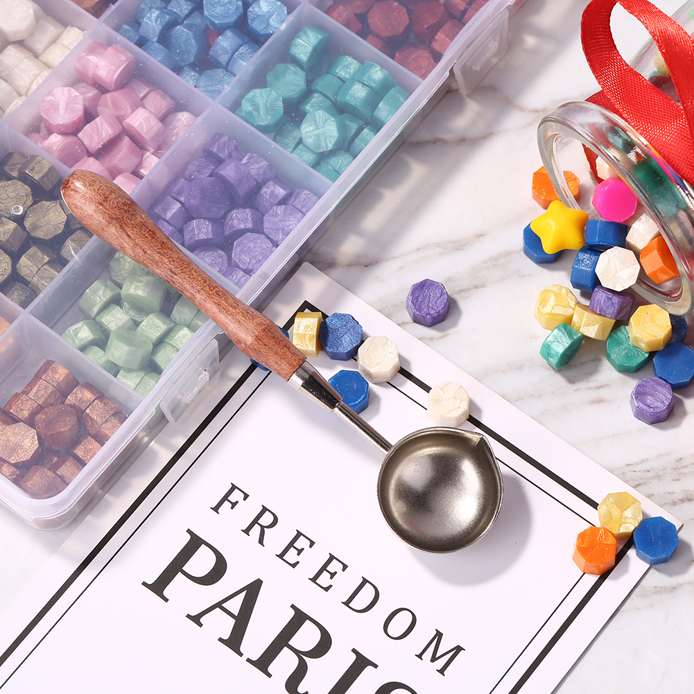 Vintage Wooden Handle Sealing Wax Spoon Seal Stamp Wax Bead Tablet Melting Burning Spoons for Scrapbooking Album Envelope Decorative Craft