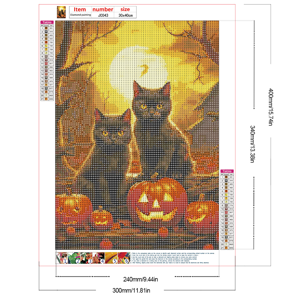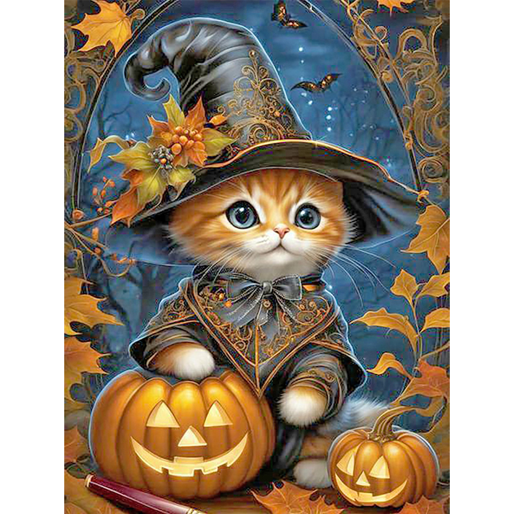 2pcs Diamond Painting - Full Round Drill - Halloween Pumpkin Cat(Canvas|30*40cm)