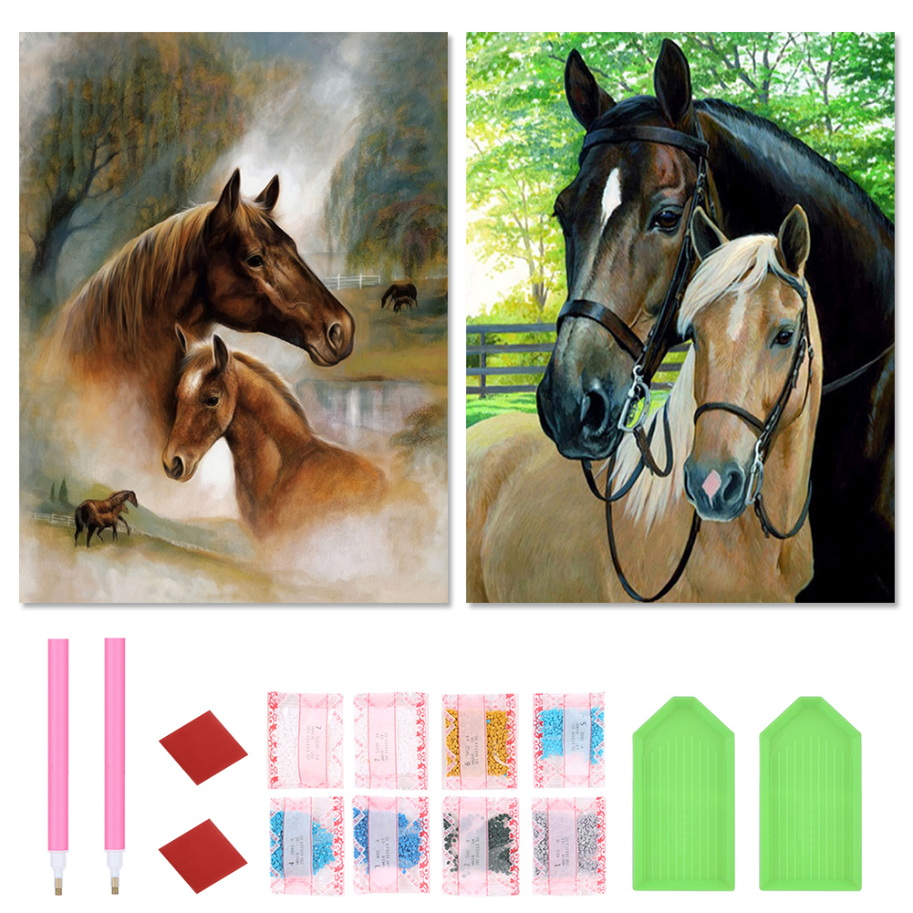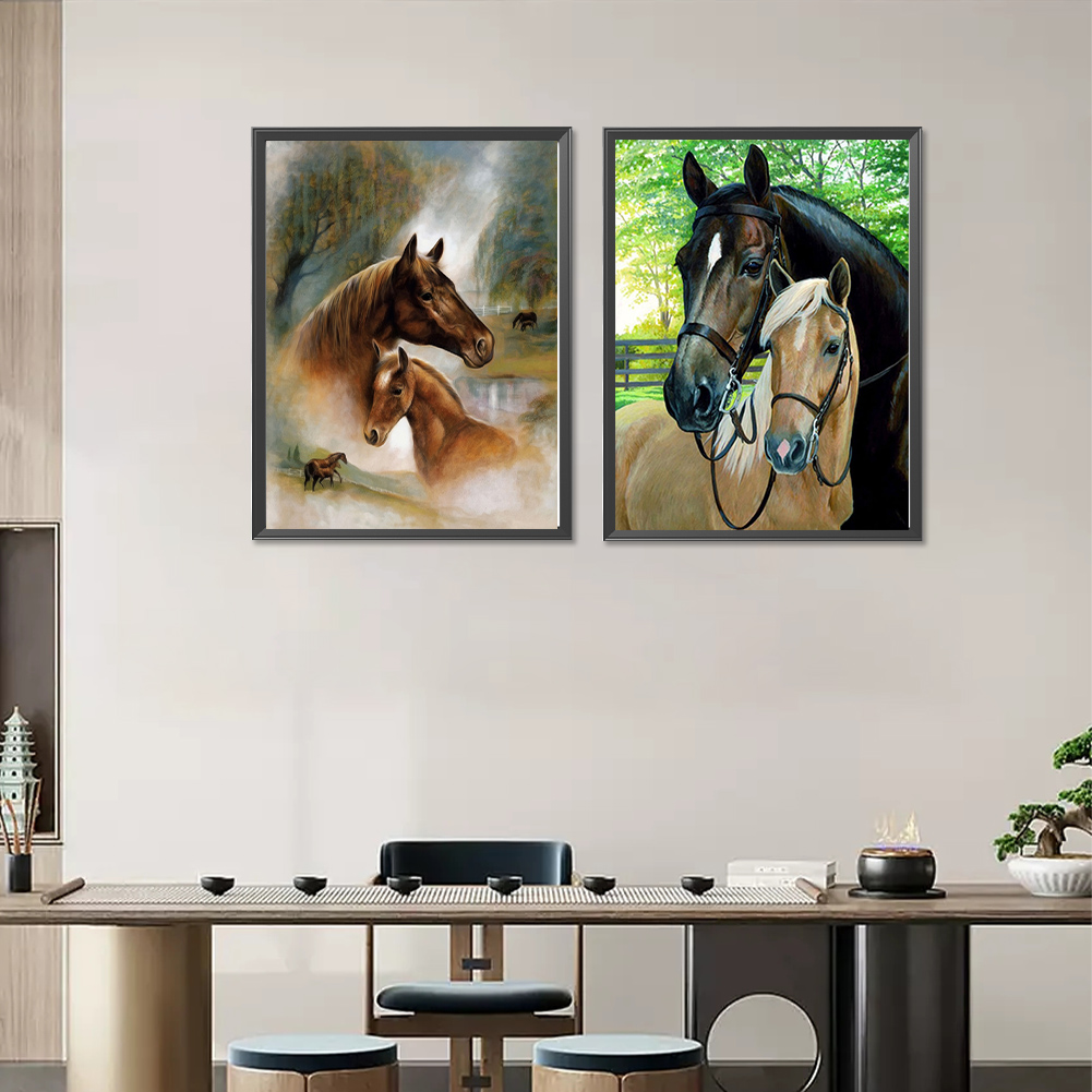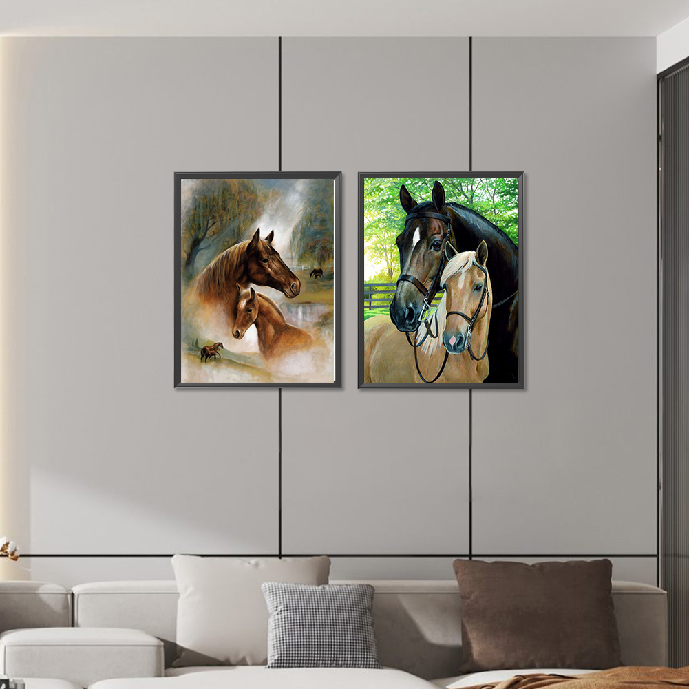2pcs Diamond Painting - Full Round Drill - Horse(Canvas|30*40cm)