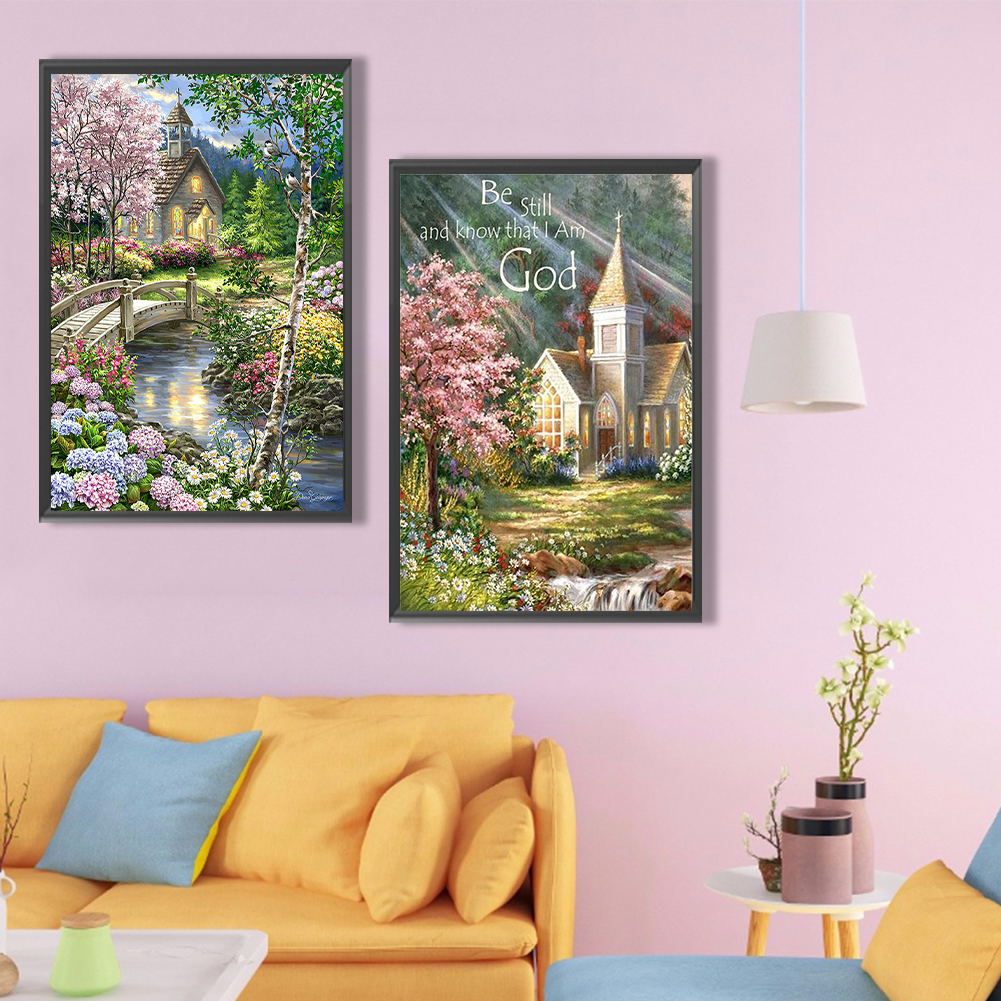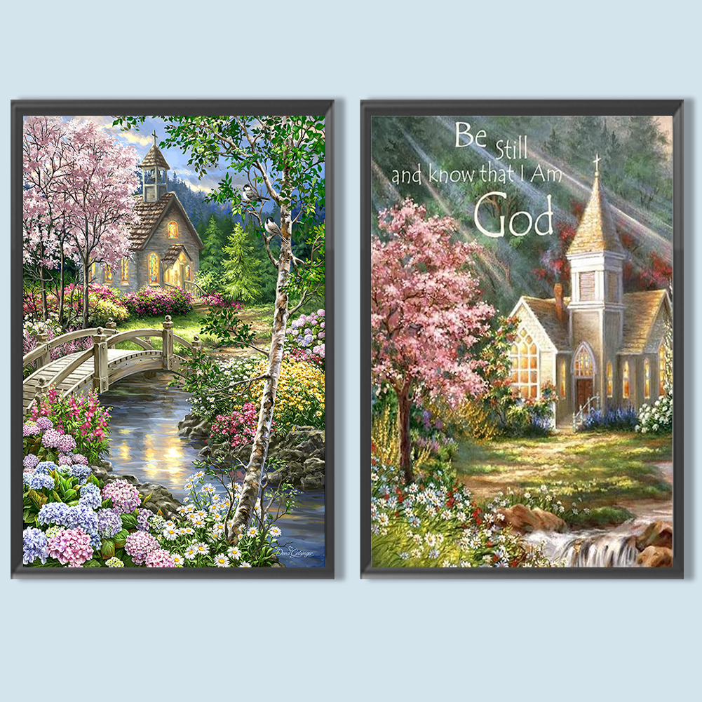 2pcs Diamond Painting - Full Round Drill - Village Castle(Canvas|40*60cm)