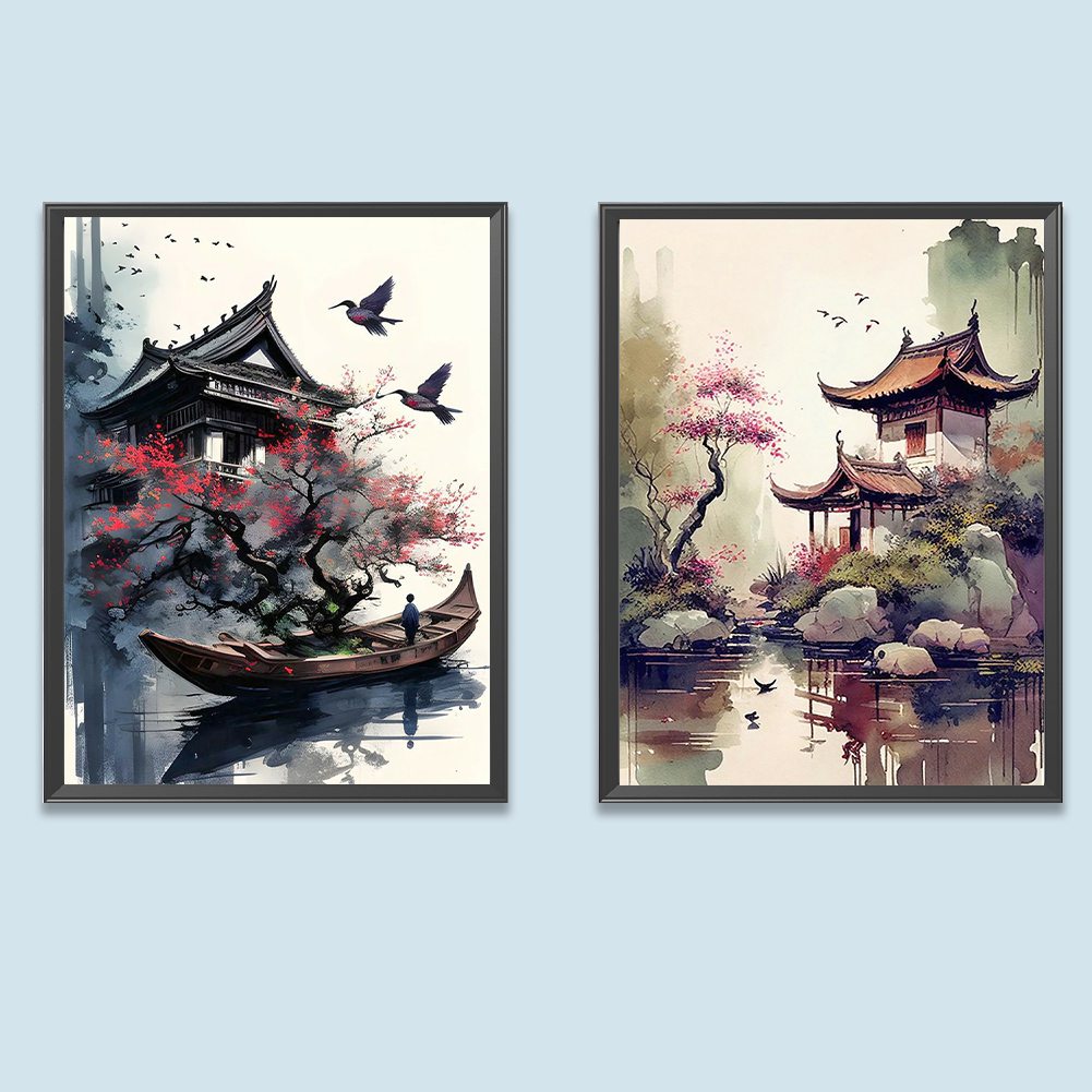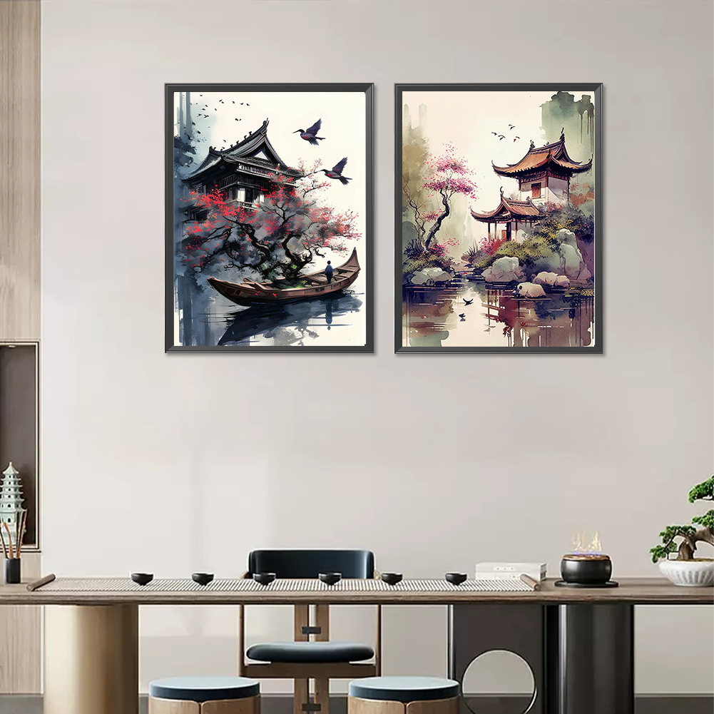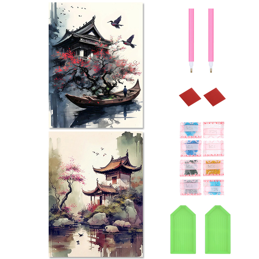 2pcs/Set Diamond Painting - Full Round Drill - Ink Landscape(Canvas|30*40cm)