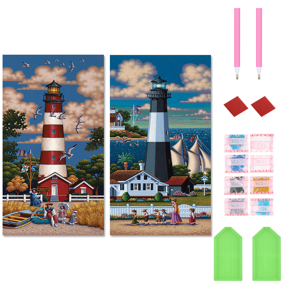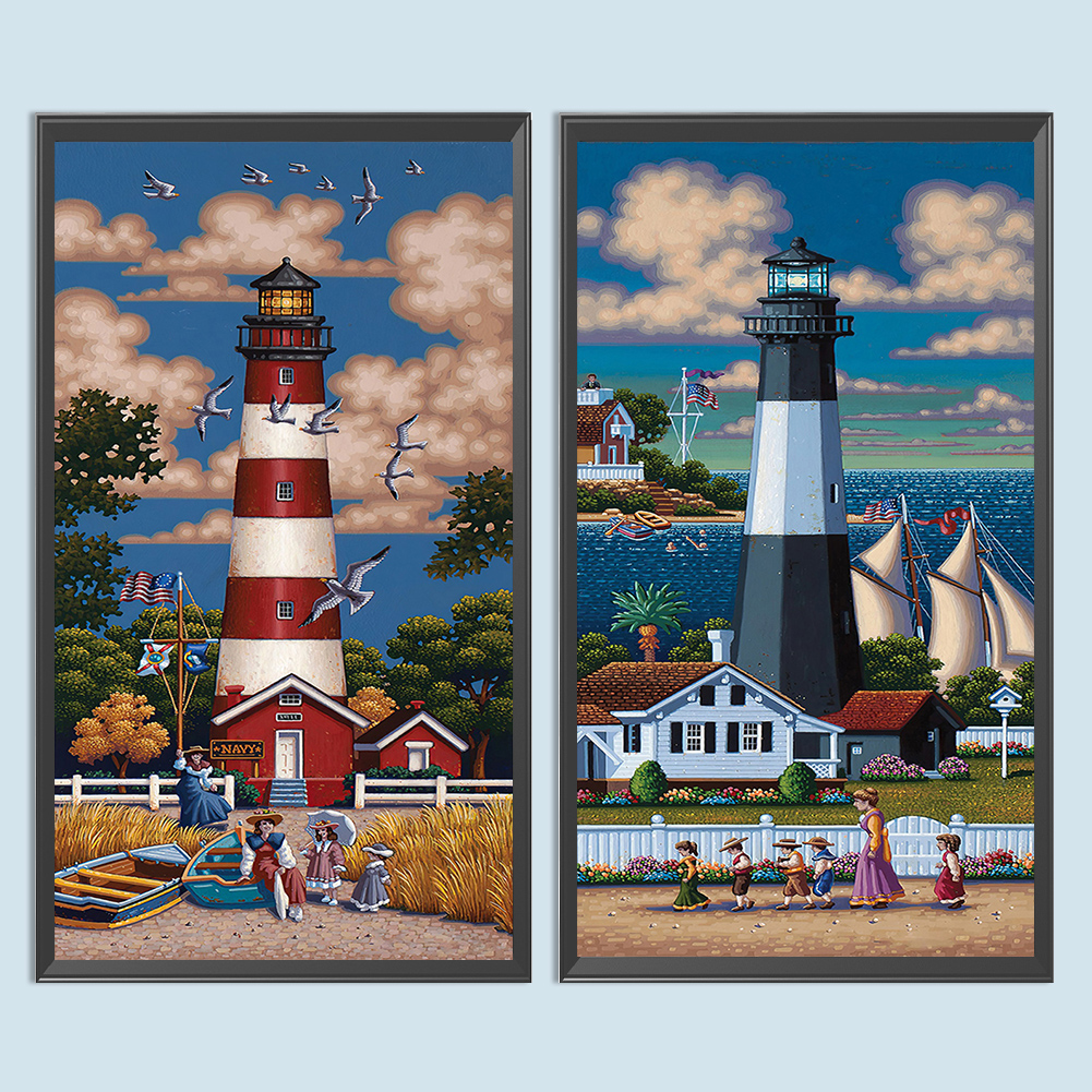 2pcs/Set Diamond Painting - Full Round Drill - Lighthouse(Canvas|30*60cm)