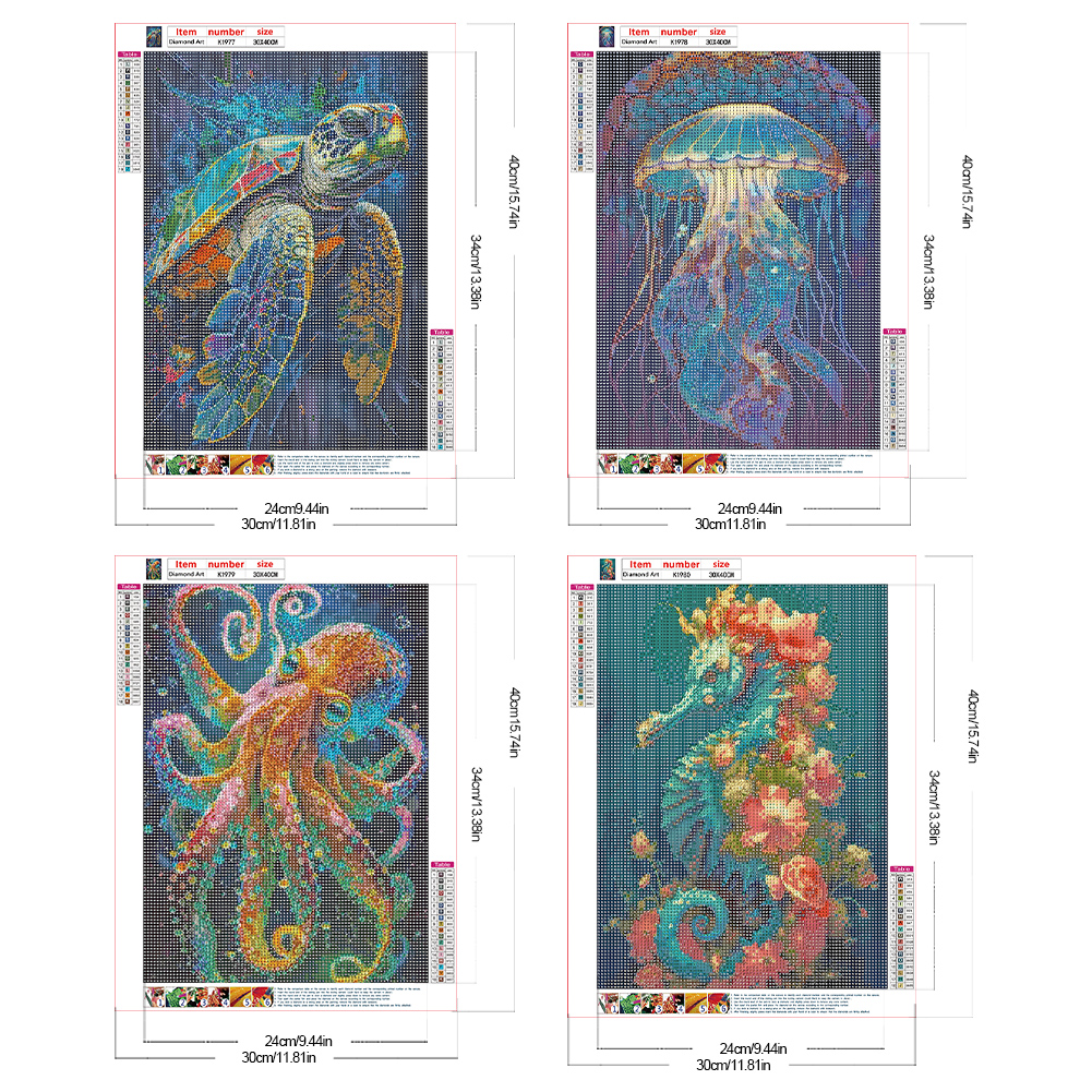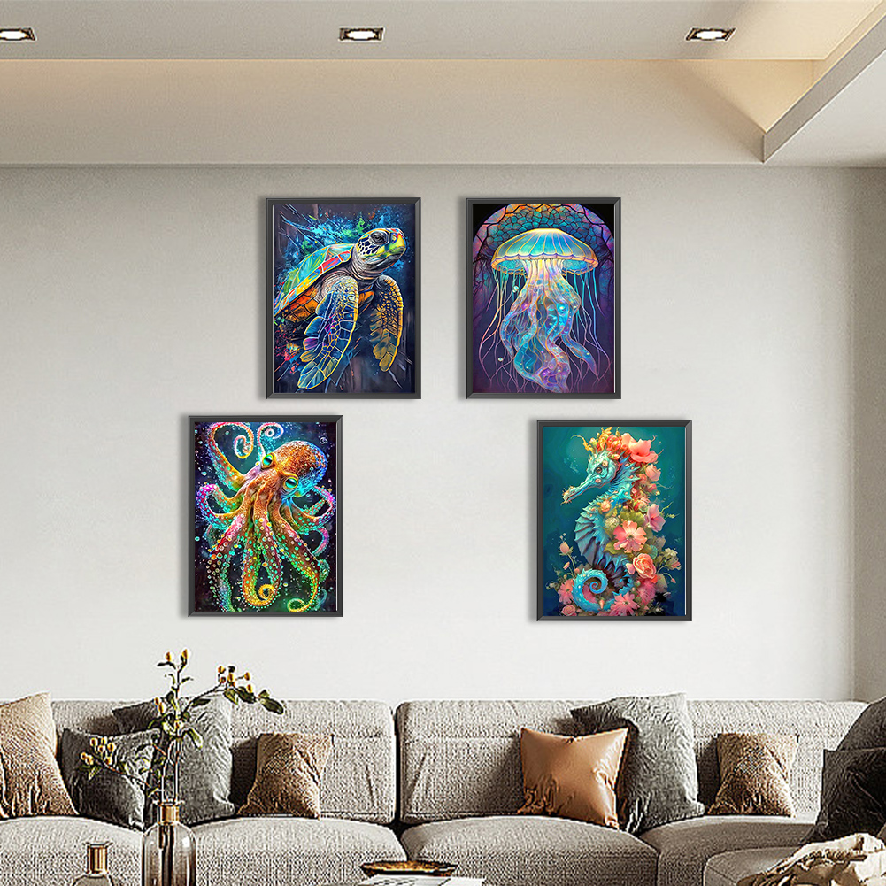 4pcs Diamond Painting - Full Round Drill - Aquatic Creatures(Canvas|30*40cm)