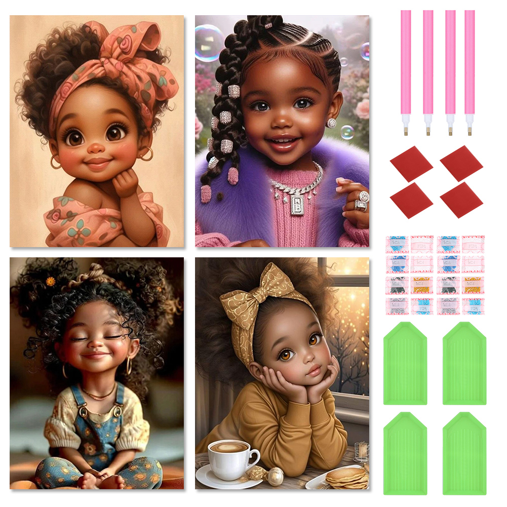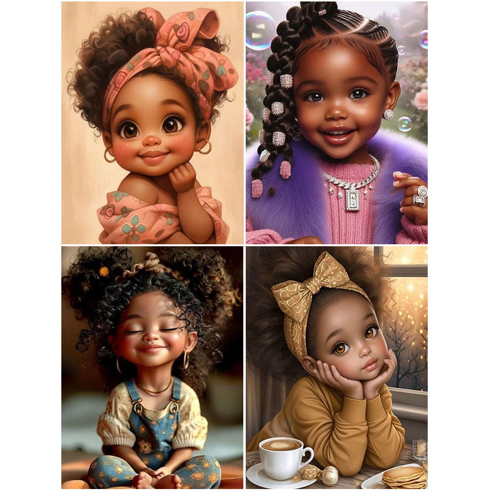 4pcs Diamond Painting - Full Round Drill - Girl(Canvas|30*40cm)