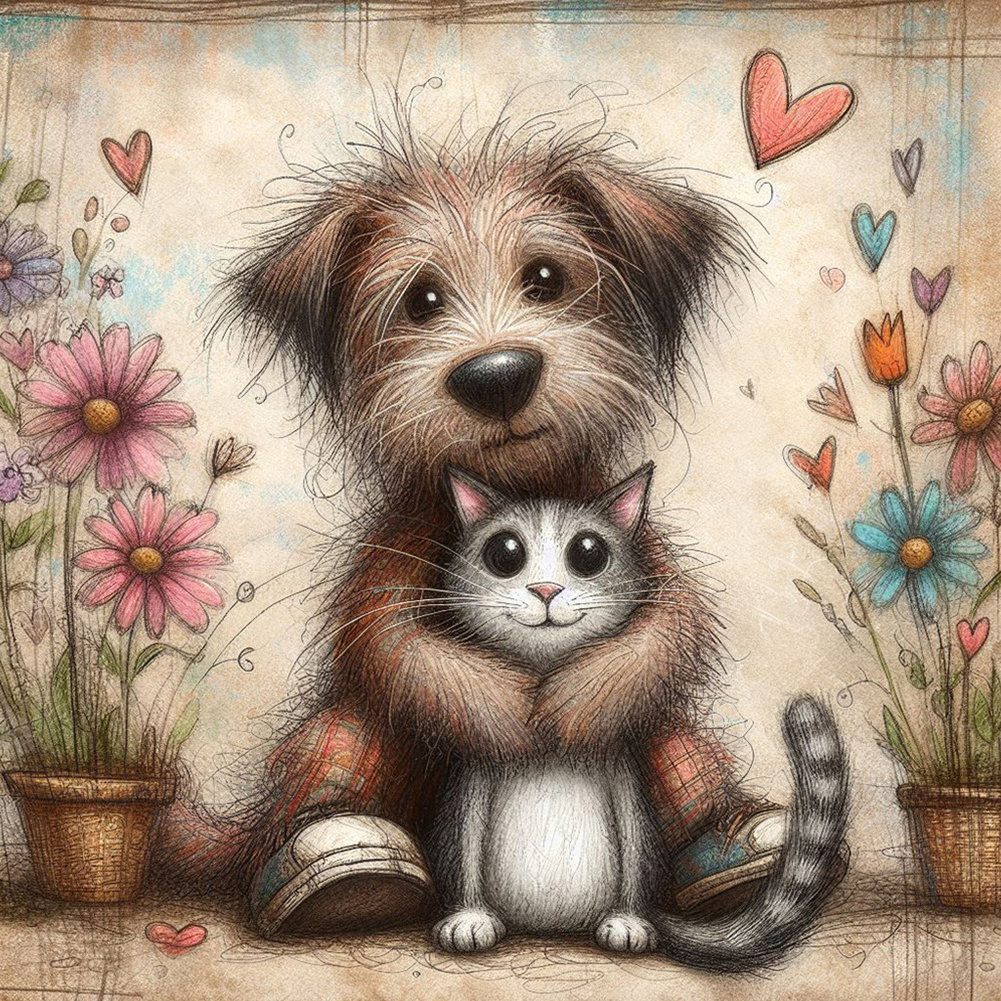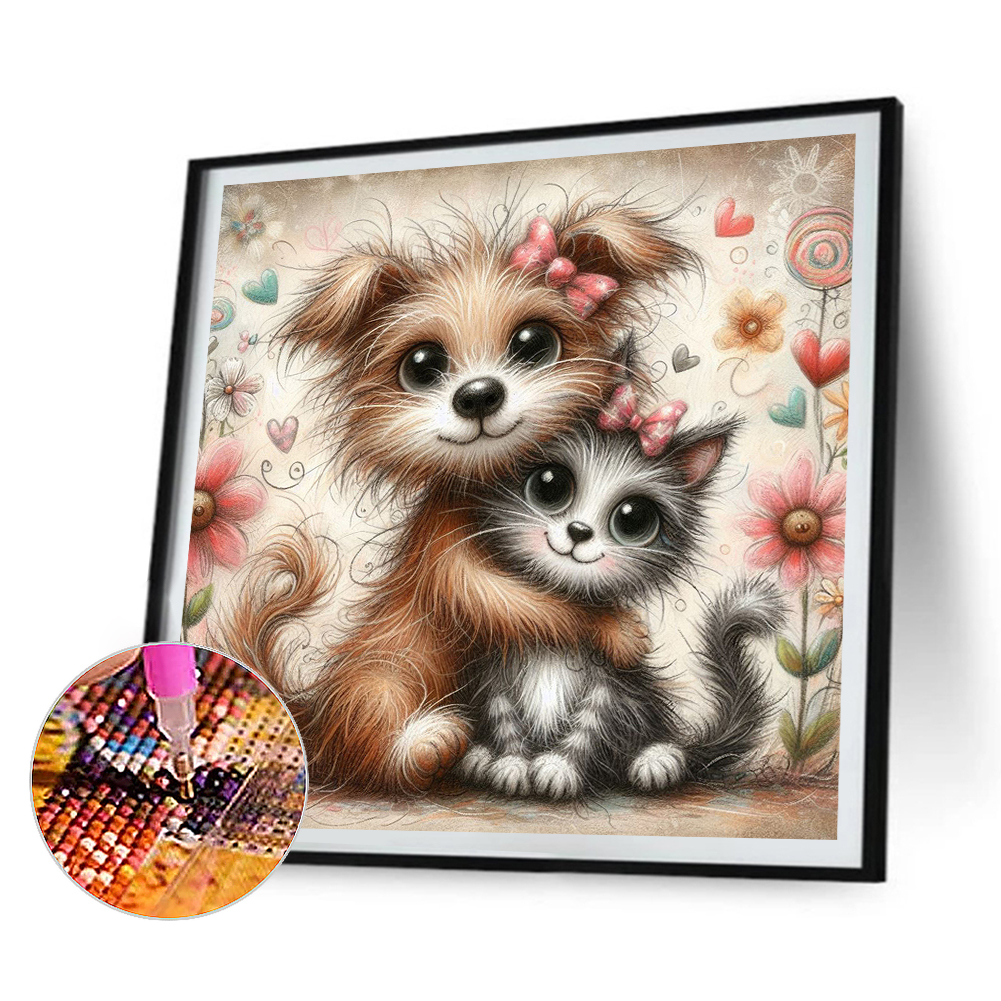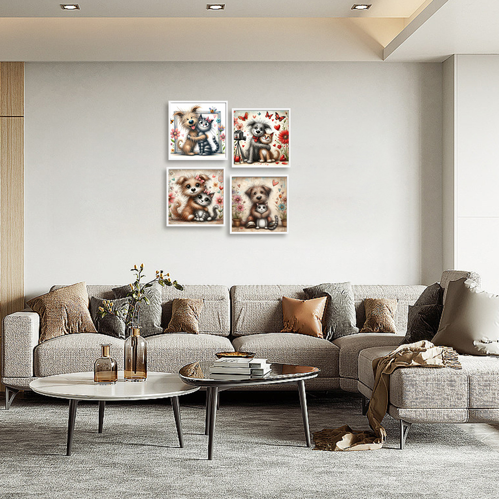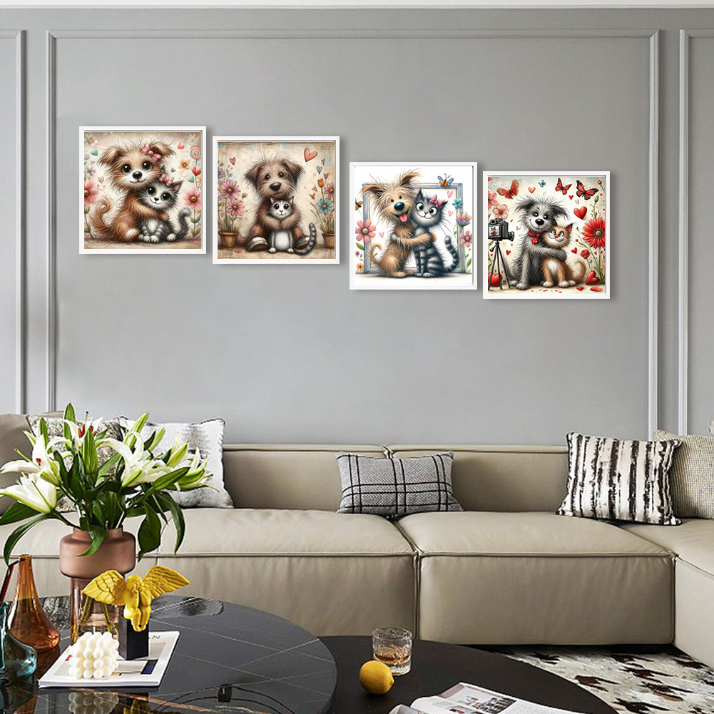 4pcs Diamond Painting - Full Round Drill - Warm Cats Dogs(Canvas|30*30cm)