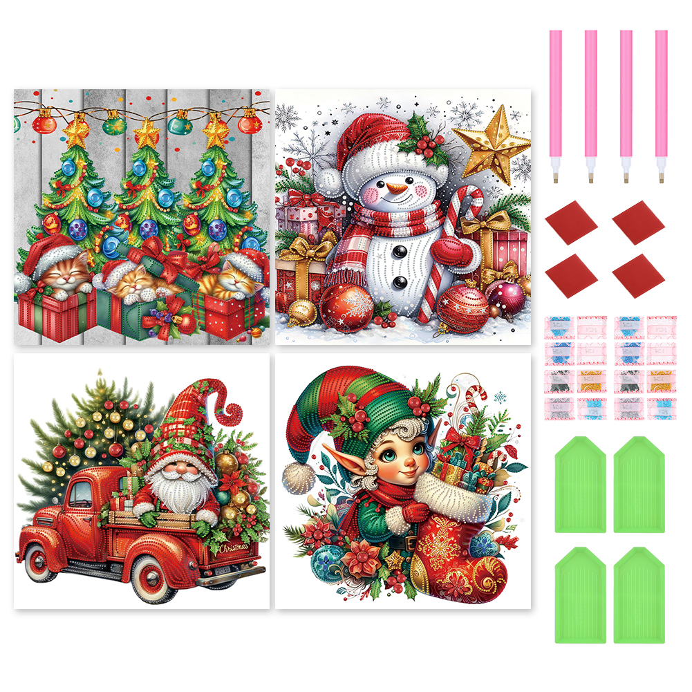 4pcs Diamond Painting - Partial Special Shaped Drill - Christmas(Canvas|40*40cm)