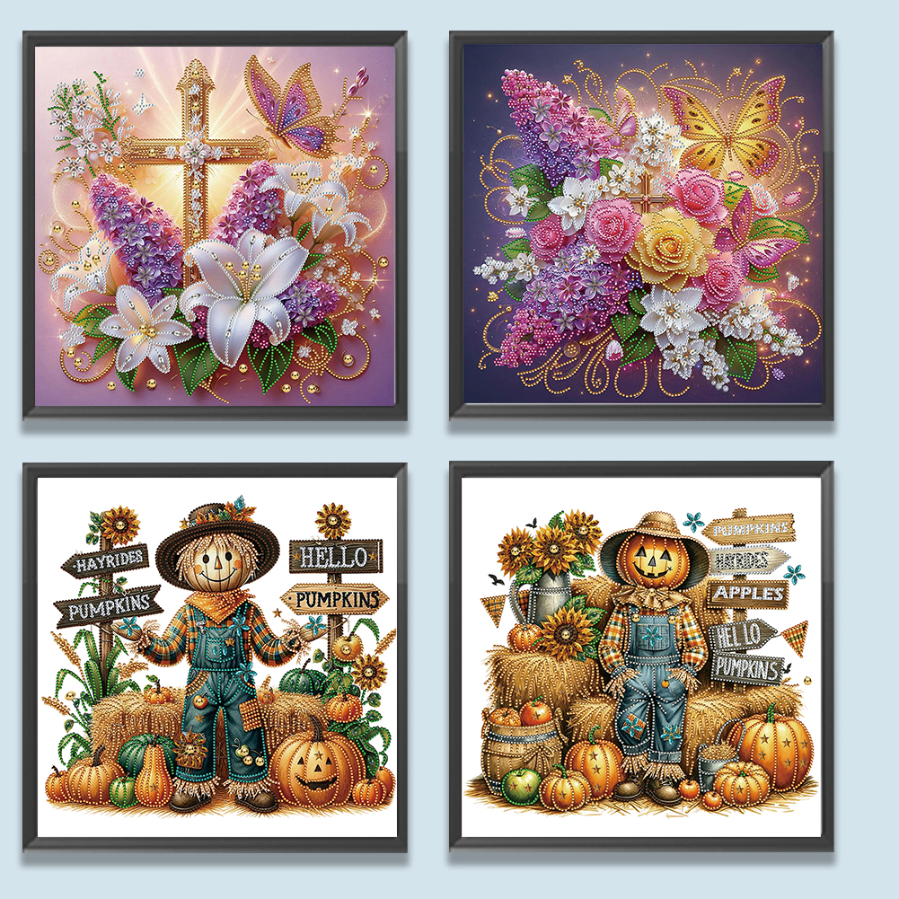 4pcs Diamond Painting - Partial Special Shaped Drill - Scarecrow Cross(Canvas|40*40cm)
