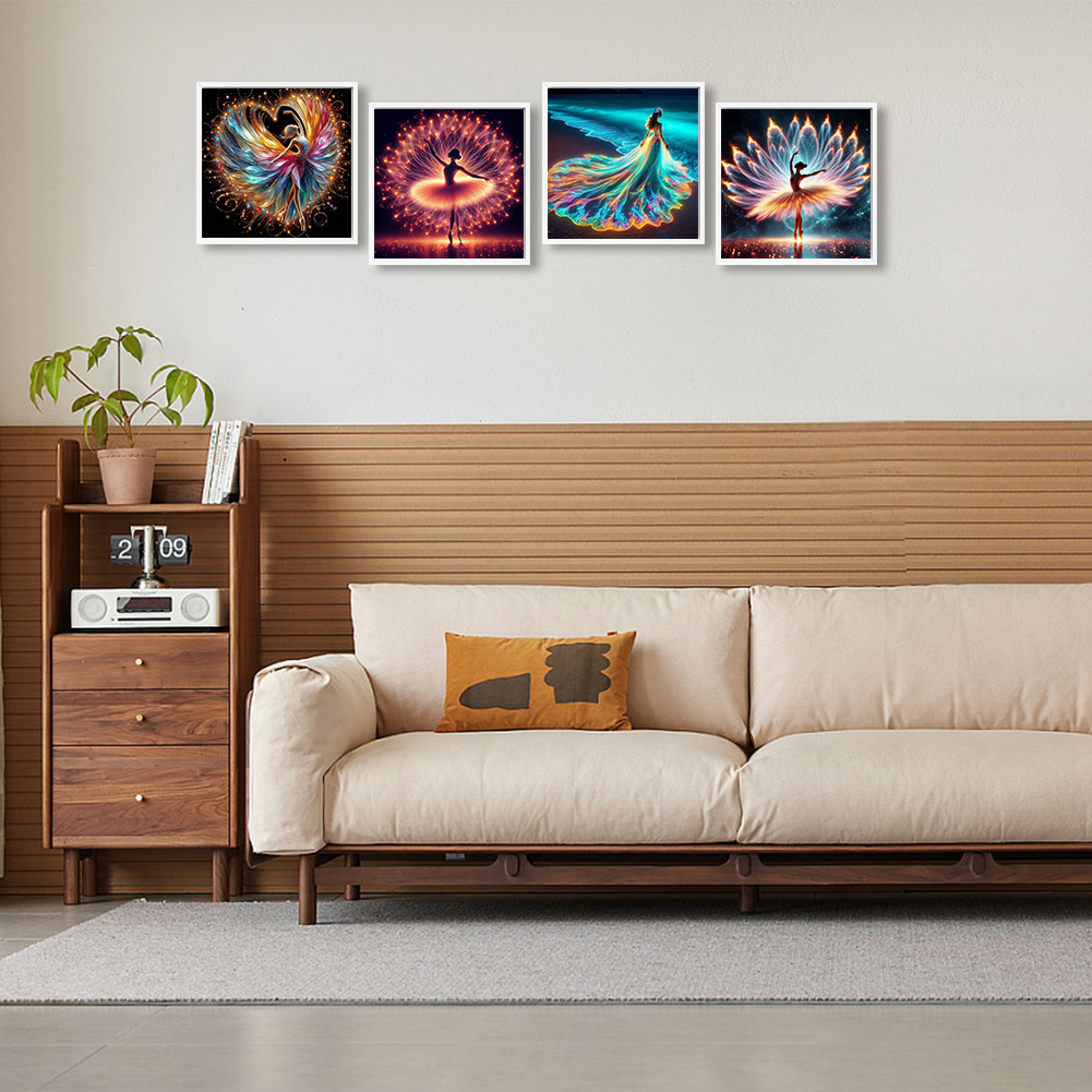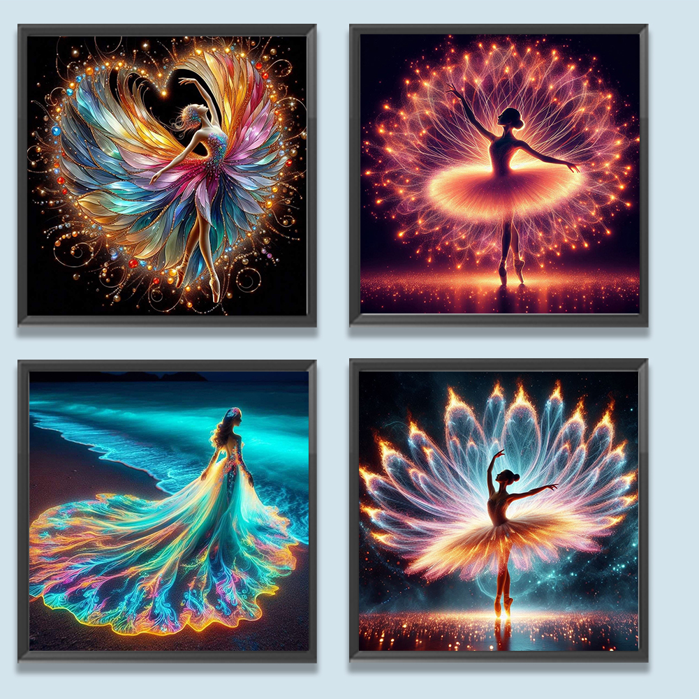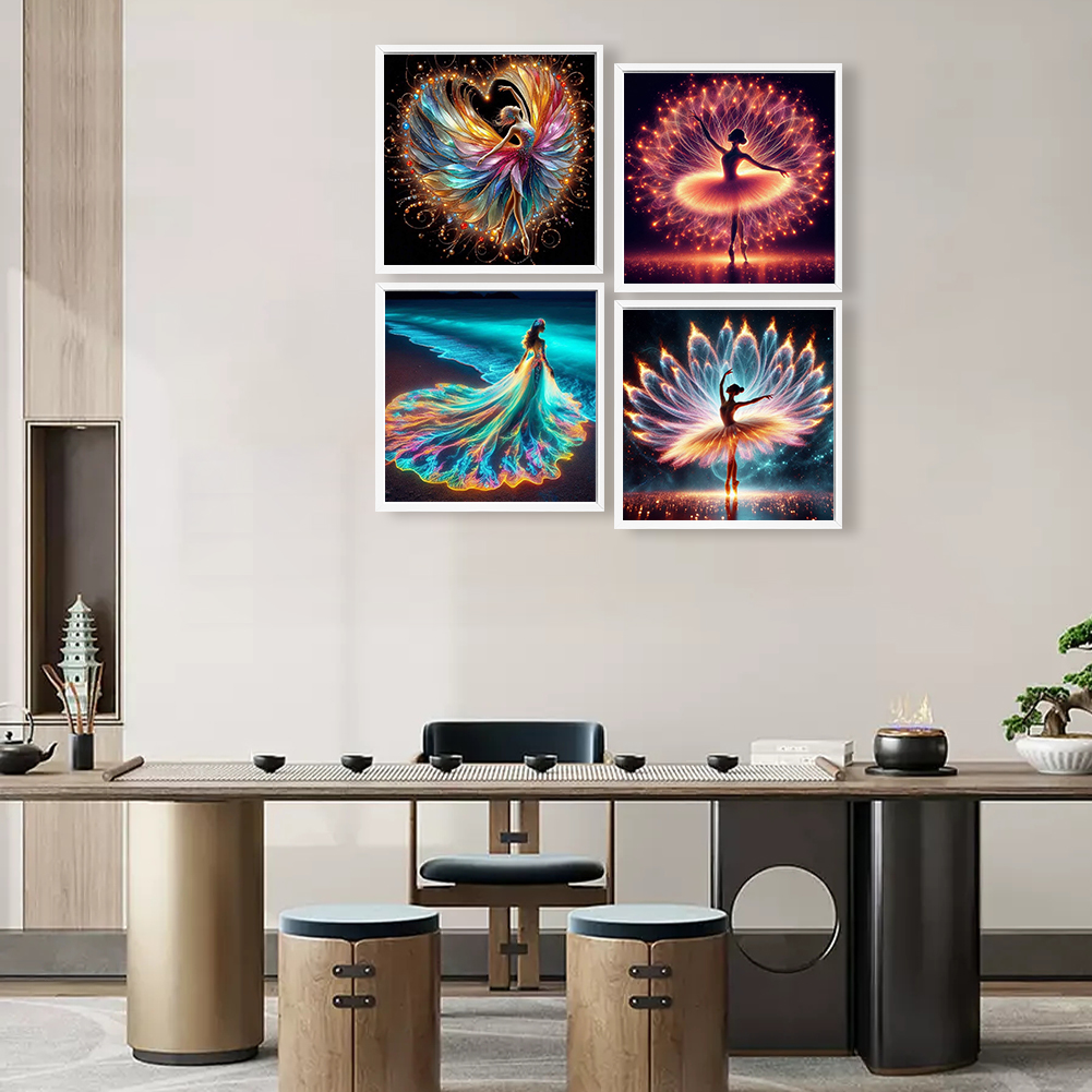 4pcs/Set Diamond Painting - Full Round Drill - Dancing Girl(Canvas|30*30cm)