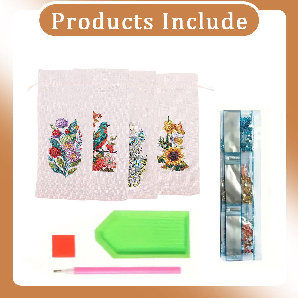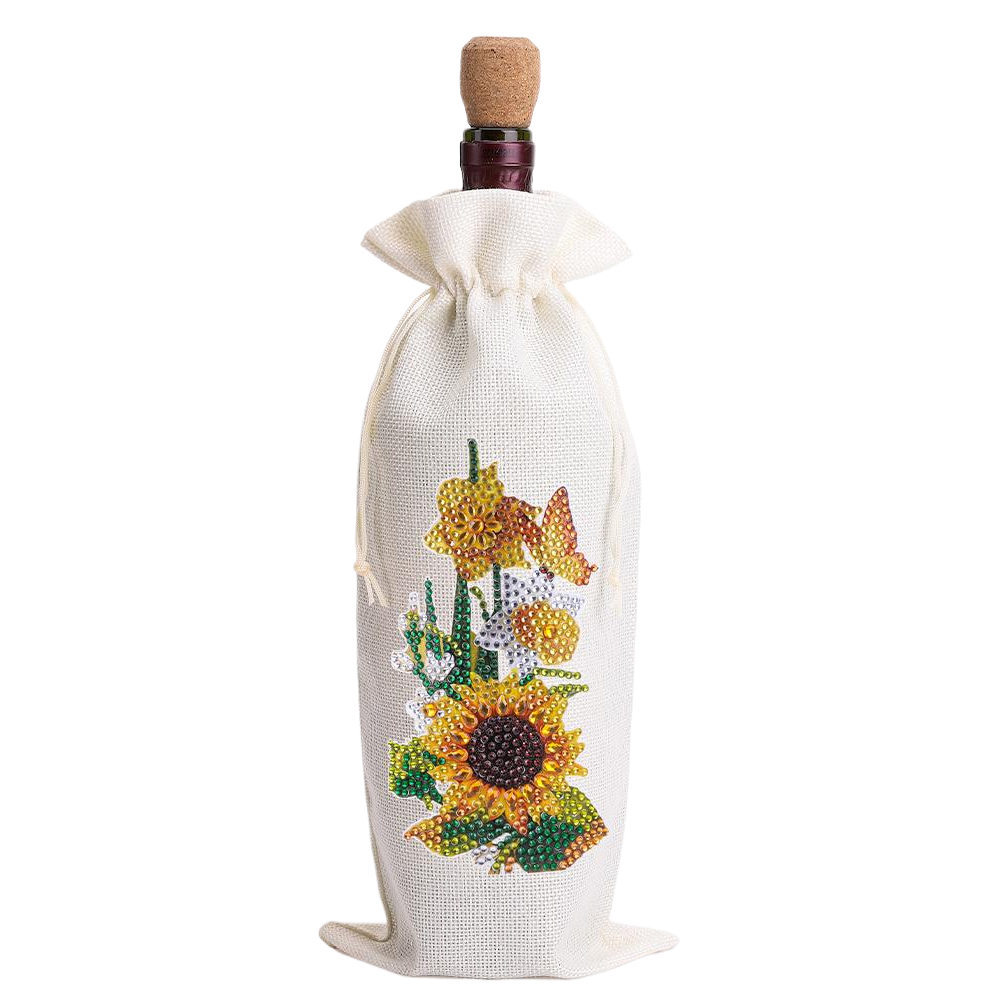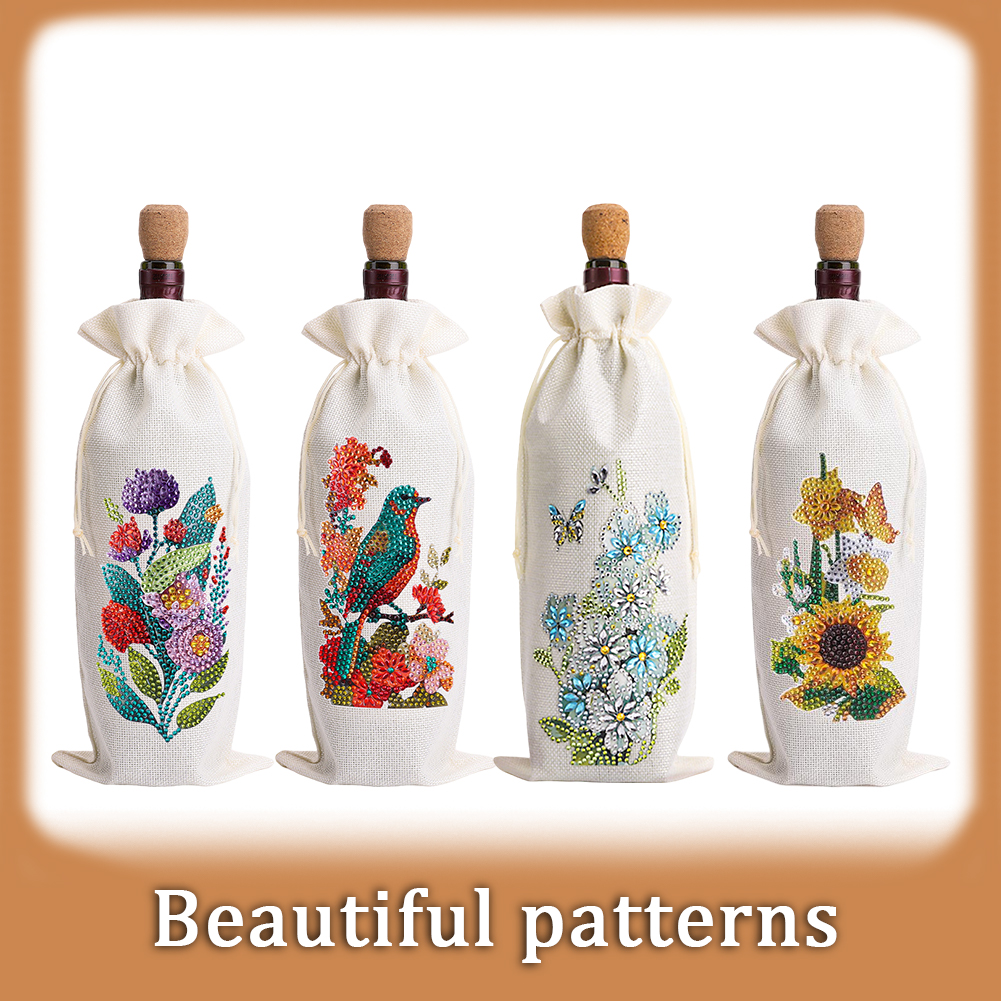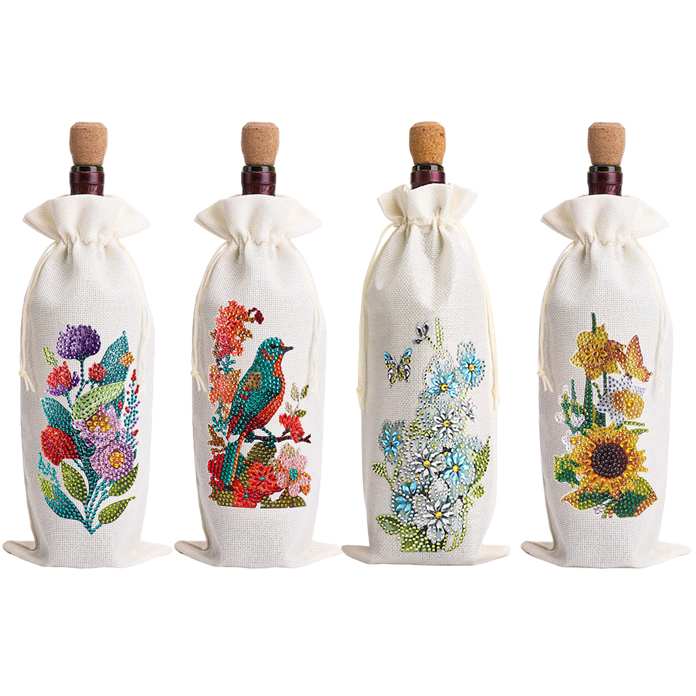 4pcs DIY Diamond Painting Wine Bag Kit Rhinestones Liquor Bottle Cover (Flower)