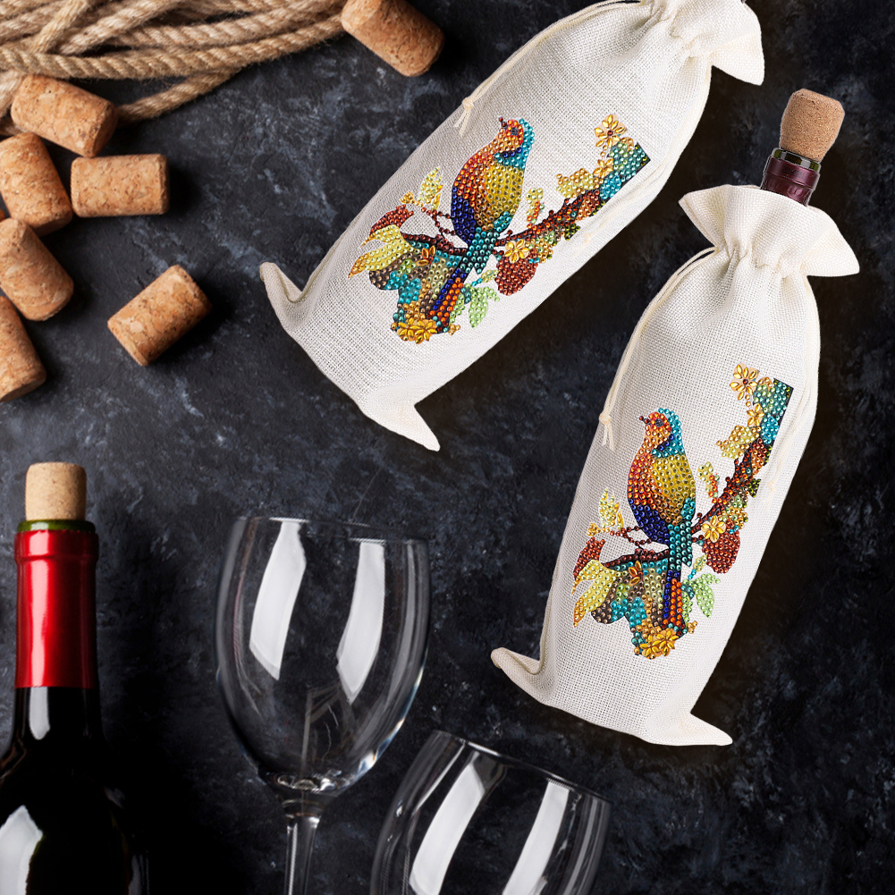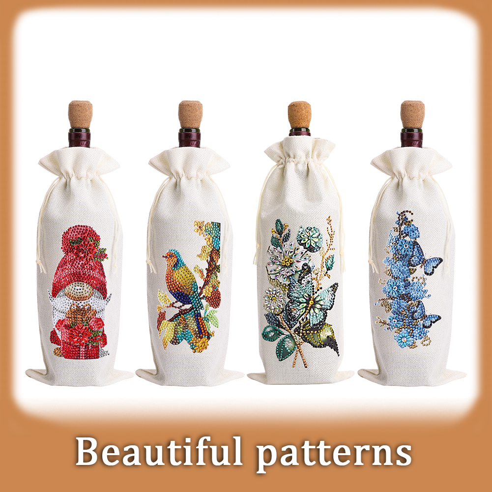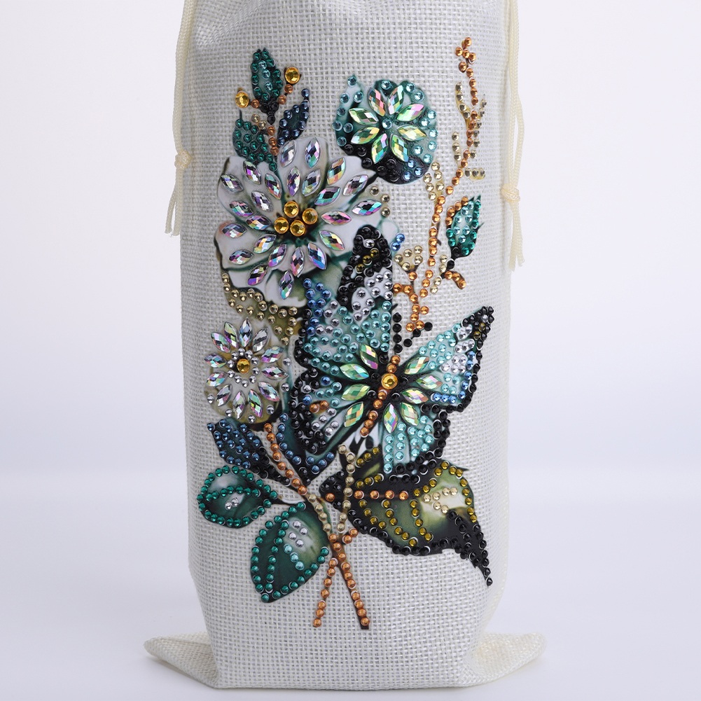 4pcs DIY Diamond Painting Wine Bag Rhinestones Liquor Bottle Cover (Butterfly)