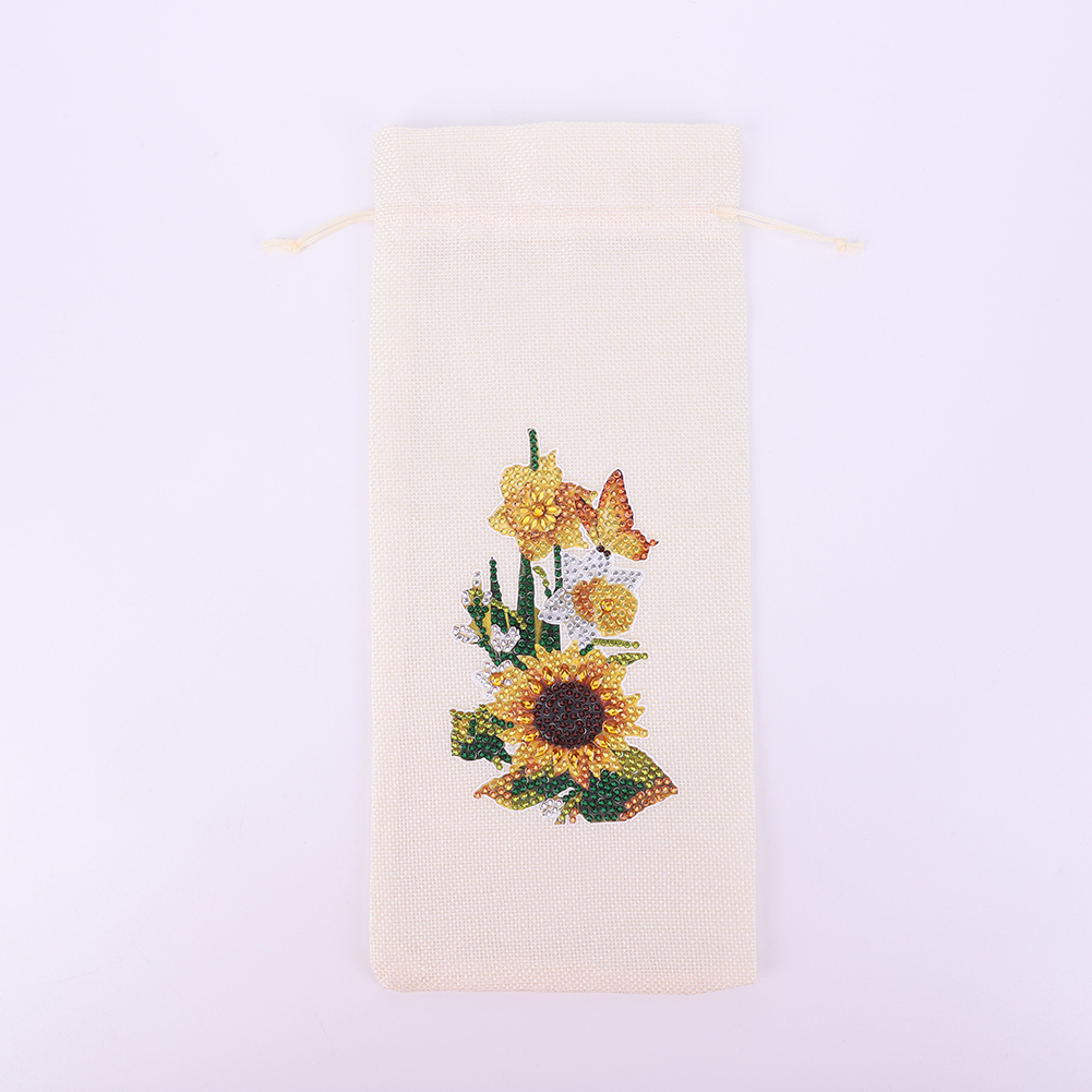 DIY Flower Diamond Painting Burlap Wine Gift Bags Label Liquor Bottle Covers