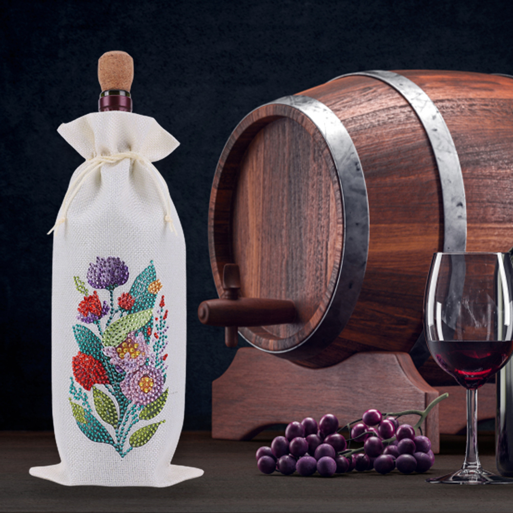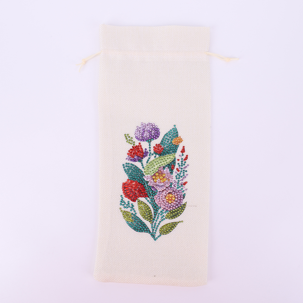 DIY Flower Diamond Painting Burlap Wine Gift Bags Label Liquor Bottle Covers