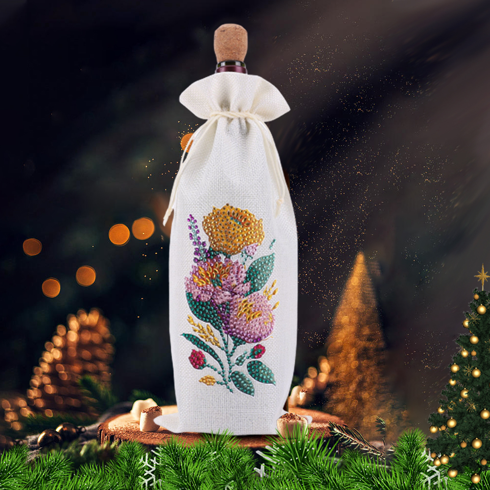 DIY Flower Diamond Painting Burlap Wine Gift Bags Label Liquor Bottle Covers