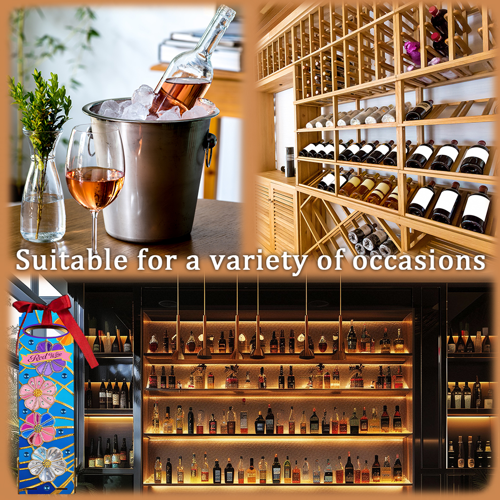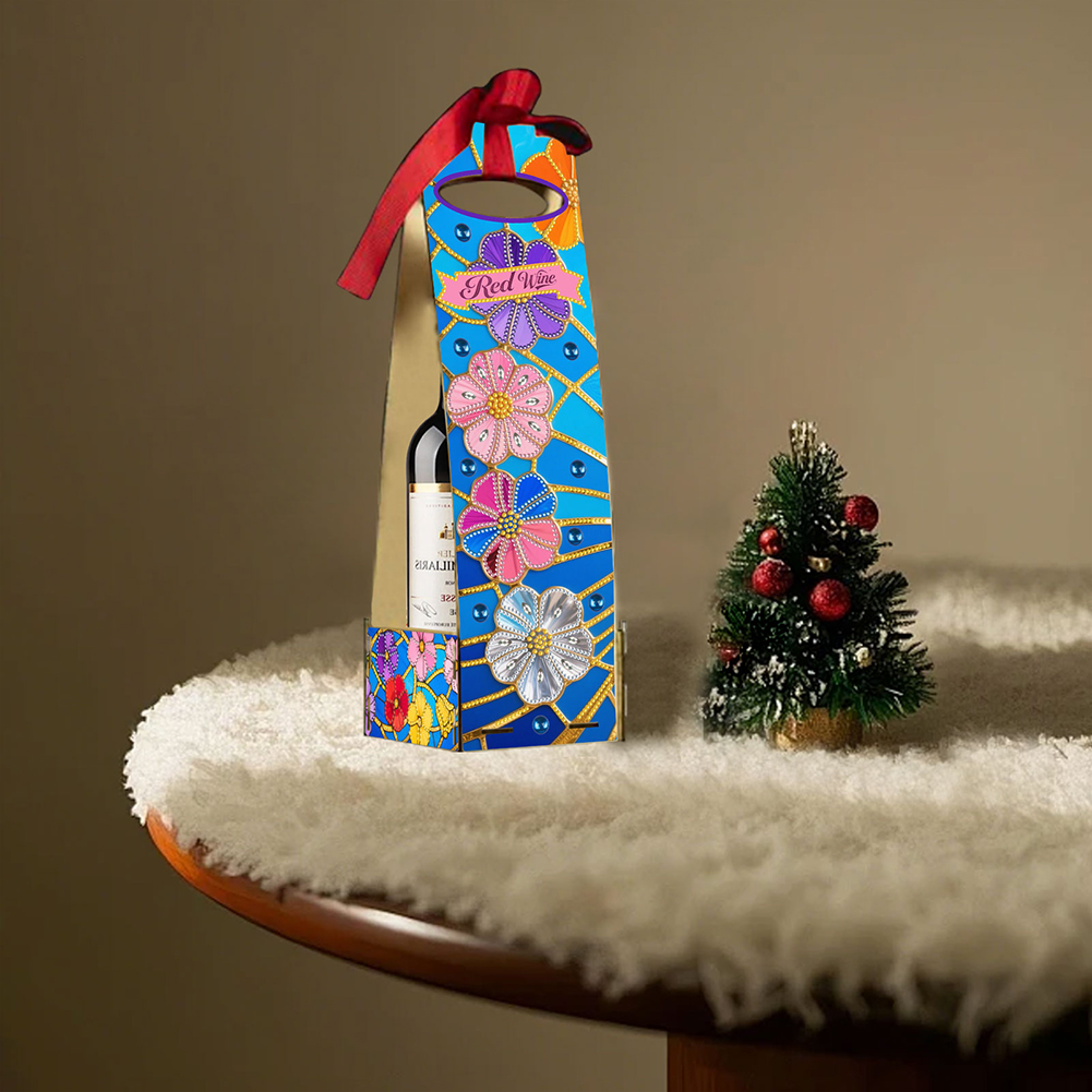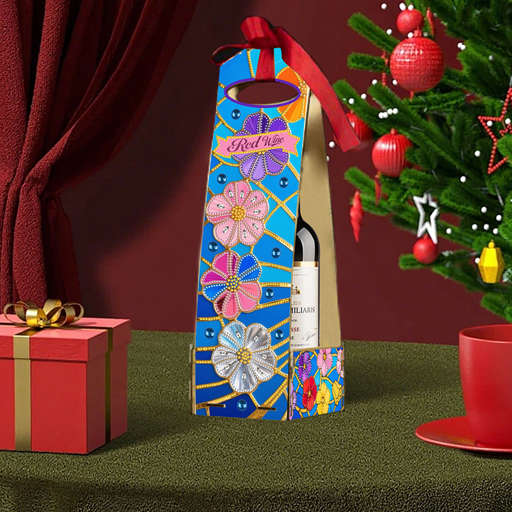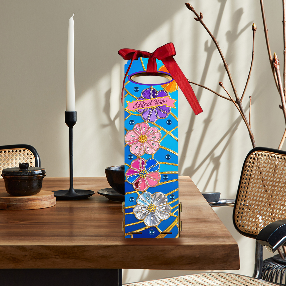 Wooden 5D/DIY Diamond Painting Art Wine Bag Kit for Party Wine Decor (Flowers)