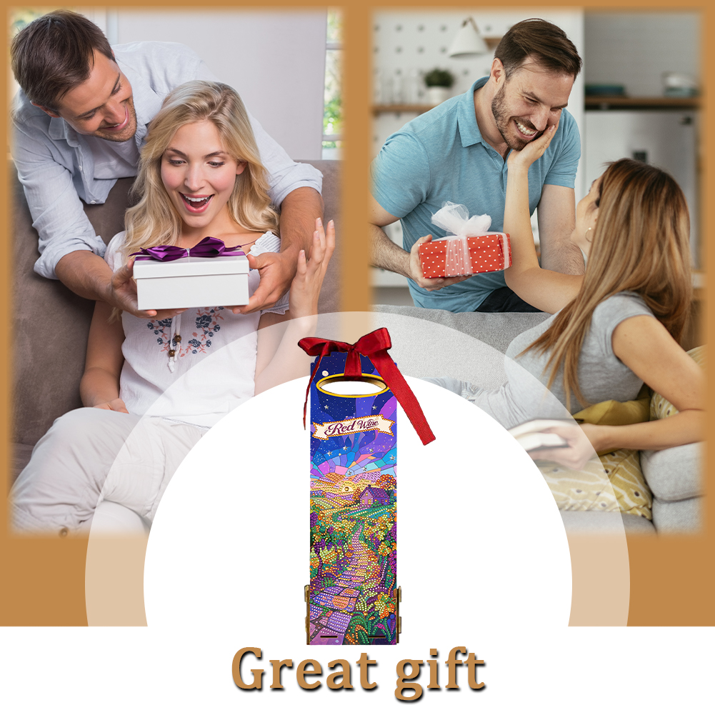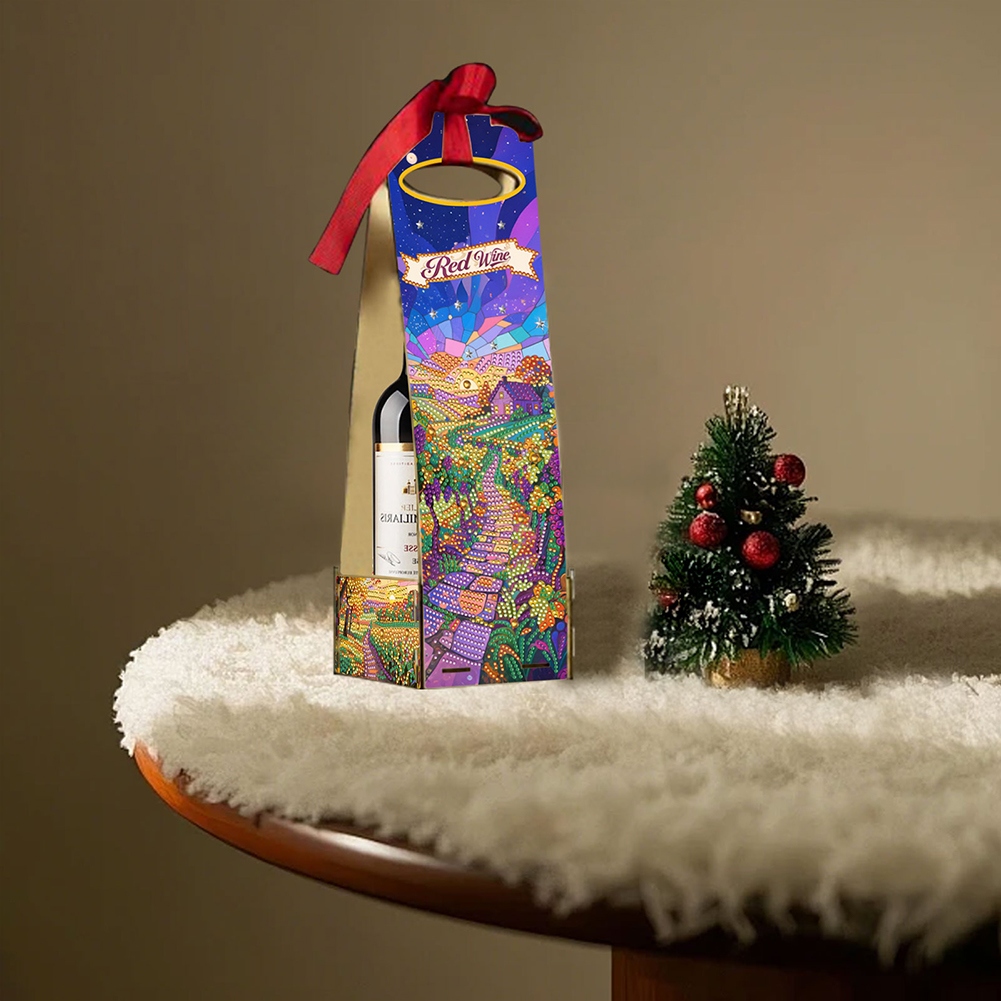 Wooden 5D/DIY Diamond Painting Art Wine Bag Kit for Party Wine Decor (Landscape)