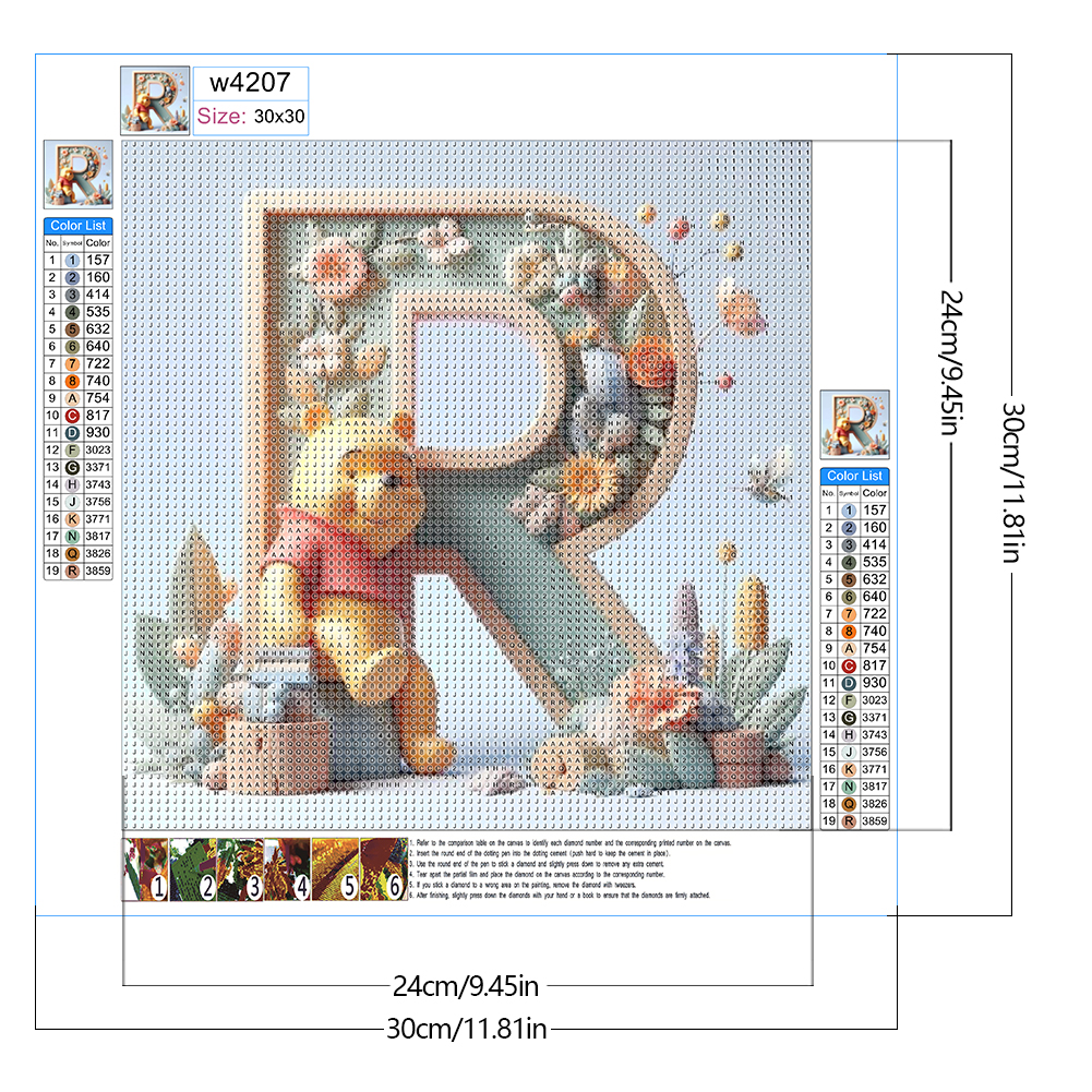 Full Round Diamond Painting 30*30cm - Winnie The Pooh'S 26 Letters R