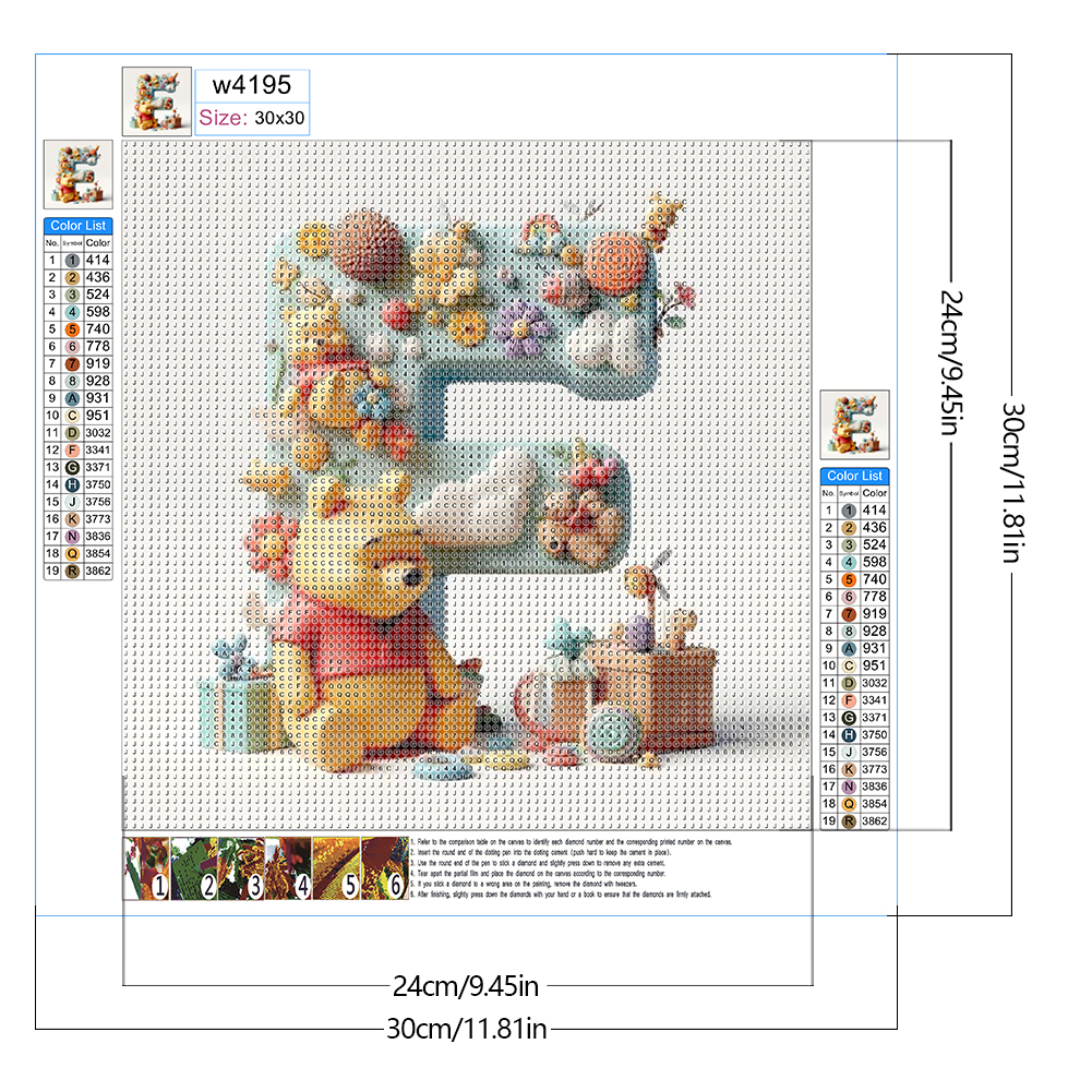 Full Round Diamond Painting 30*30cm - Winnie The Pooh'S 26 Letters F