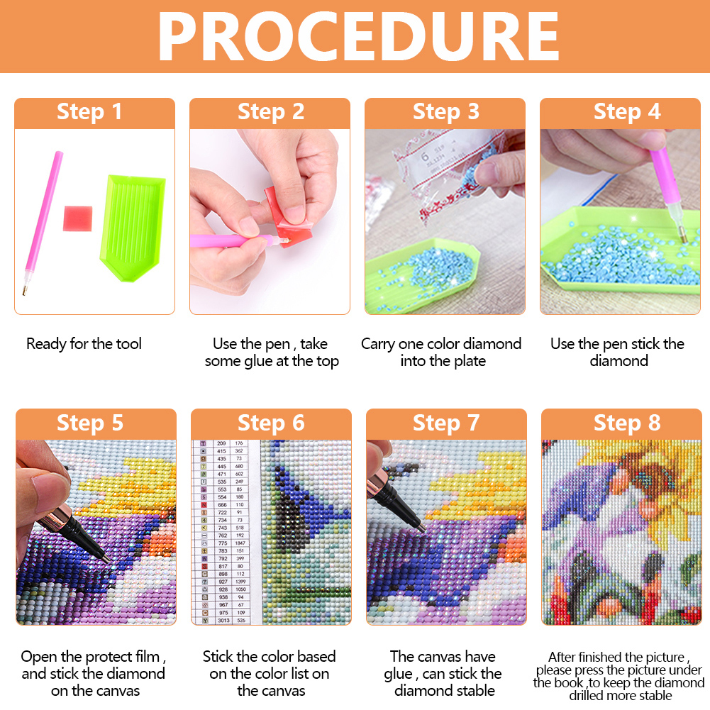 Our Diamond Painting kits include a canvas and a set of painting tools (Pen, Tray, Wax , Rhinestones)【Without Frame】