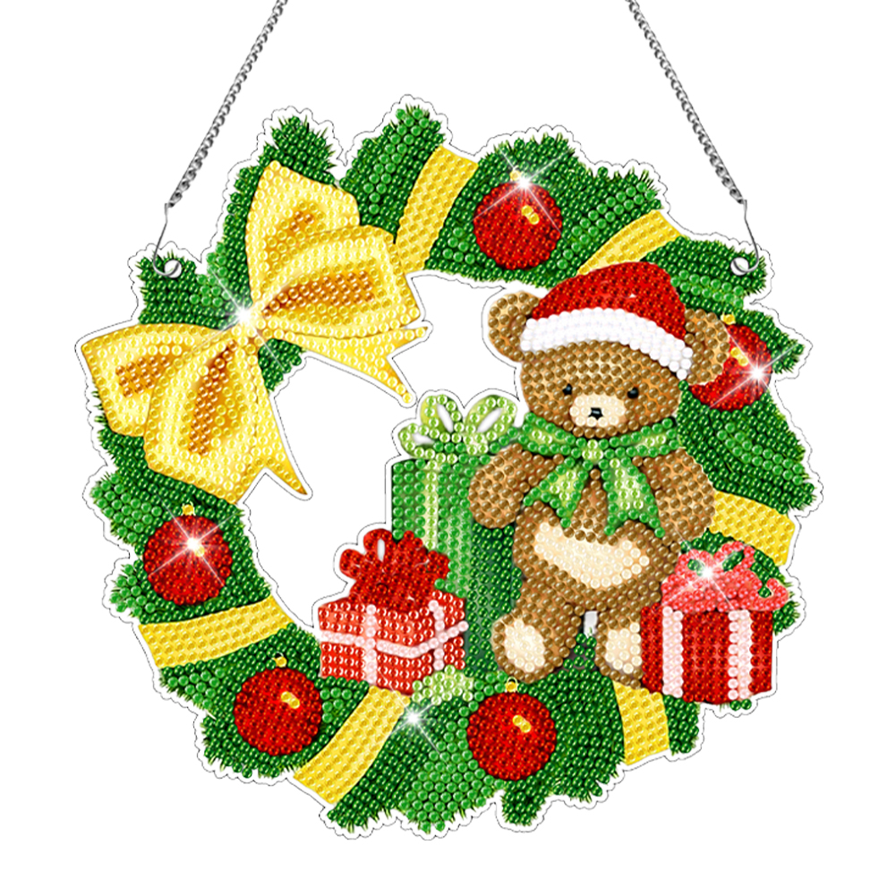 DIY Christmas Bear Wreath Acrylic Single Side Special Shaped Diamond Painting Hanging Ornament